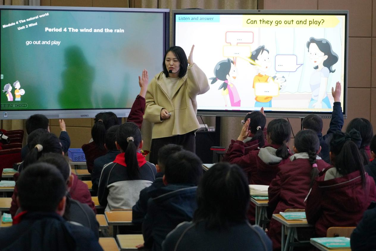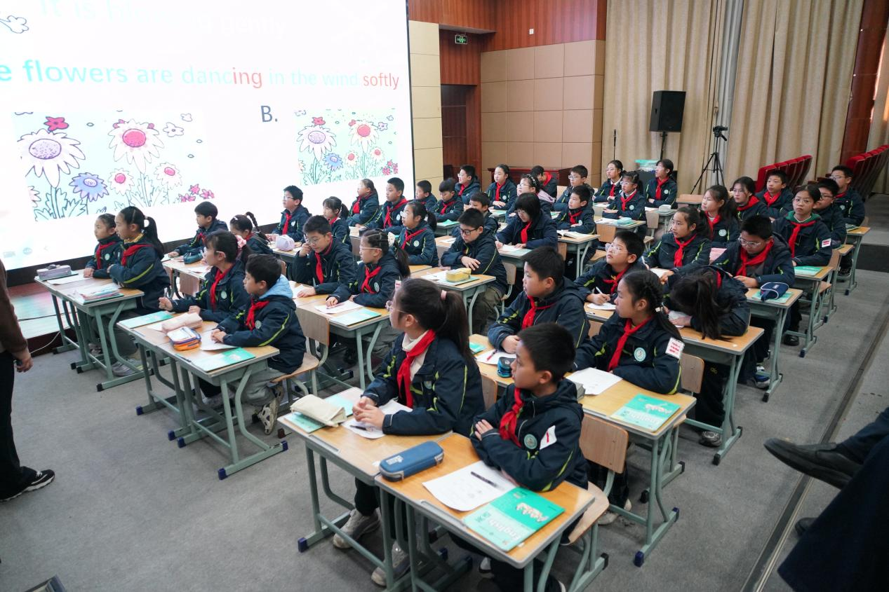 2025年12月9日上午,主题为“聚焦主题意义,优化学习活动”的小学英语学科区域主题教研活动在青浦豫英小学举办。活动由区教育学院课程与教学研修中心小学英语教研员周根妹老师主持。区教育学院研修中心教研员张敏稚老师和各小学英语五年级英语教师代表共计100余人参与了本次活动。