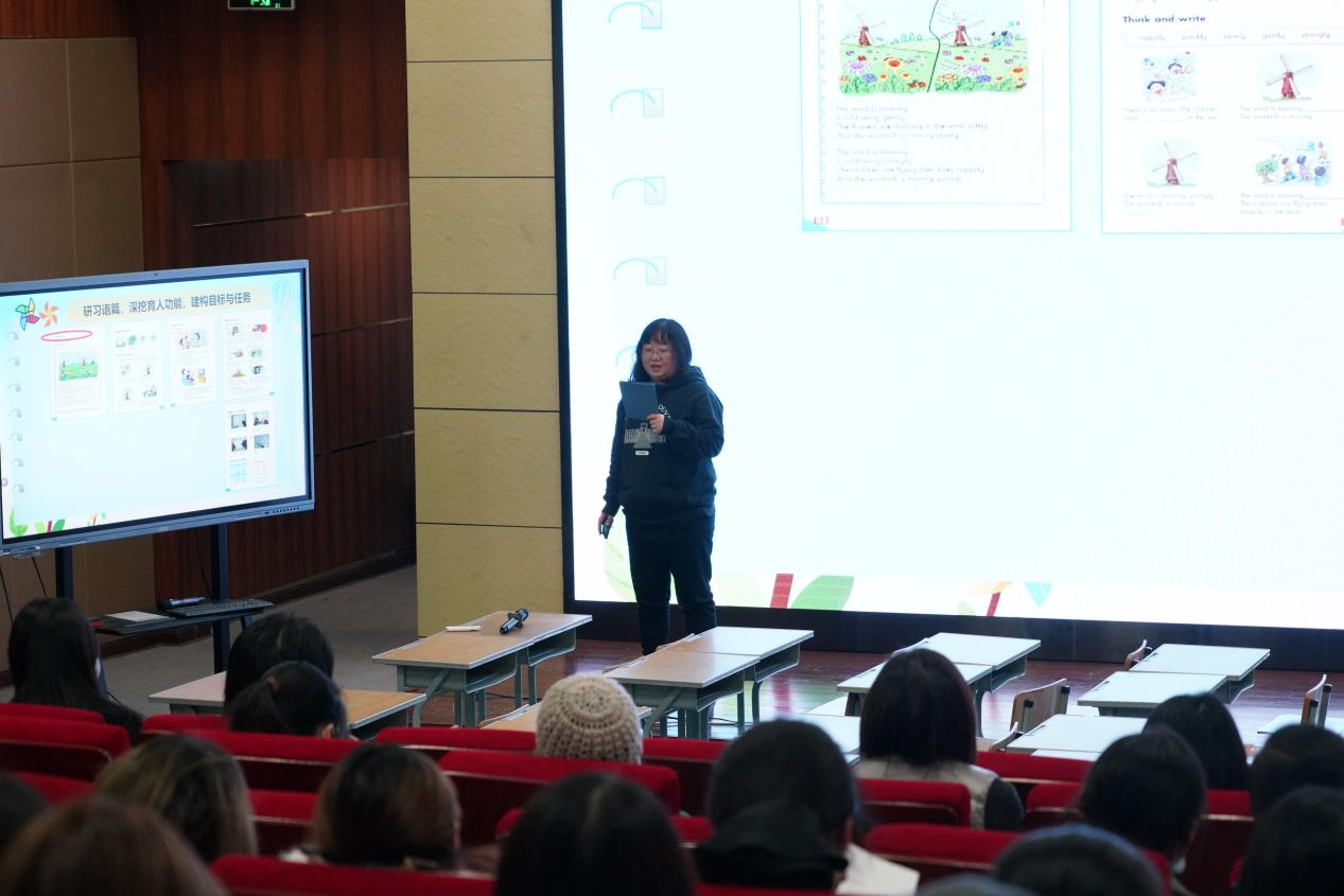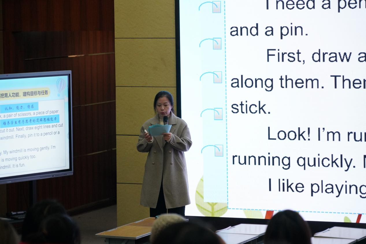 随后,佳禾小学梅瑾老师和唯实小学沈佩芳老师围绕“研习语篇,深挖育人功能,建构目标与任务”、“精设活动,基于话题语篇,优化过程与环节”和“教学评一体,围绕教学核心,实现全程呼应”三个方面就第二、三课时教学设计思路和活动推进进行了说明和阐述。