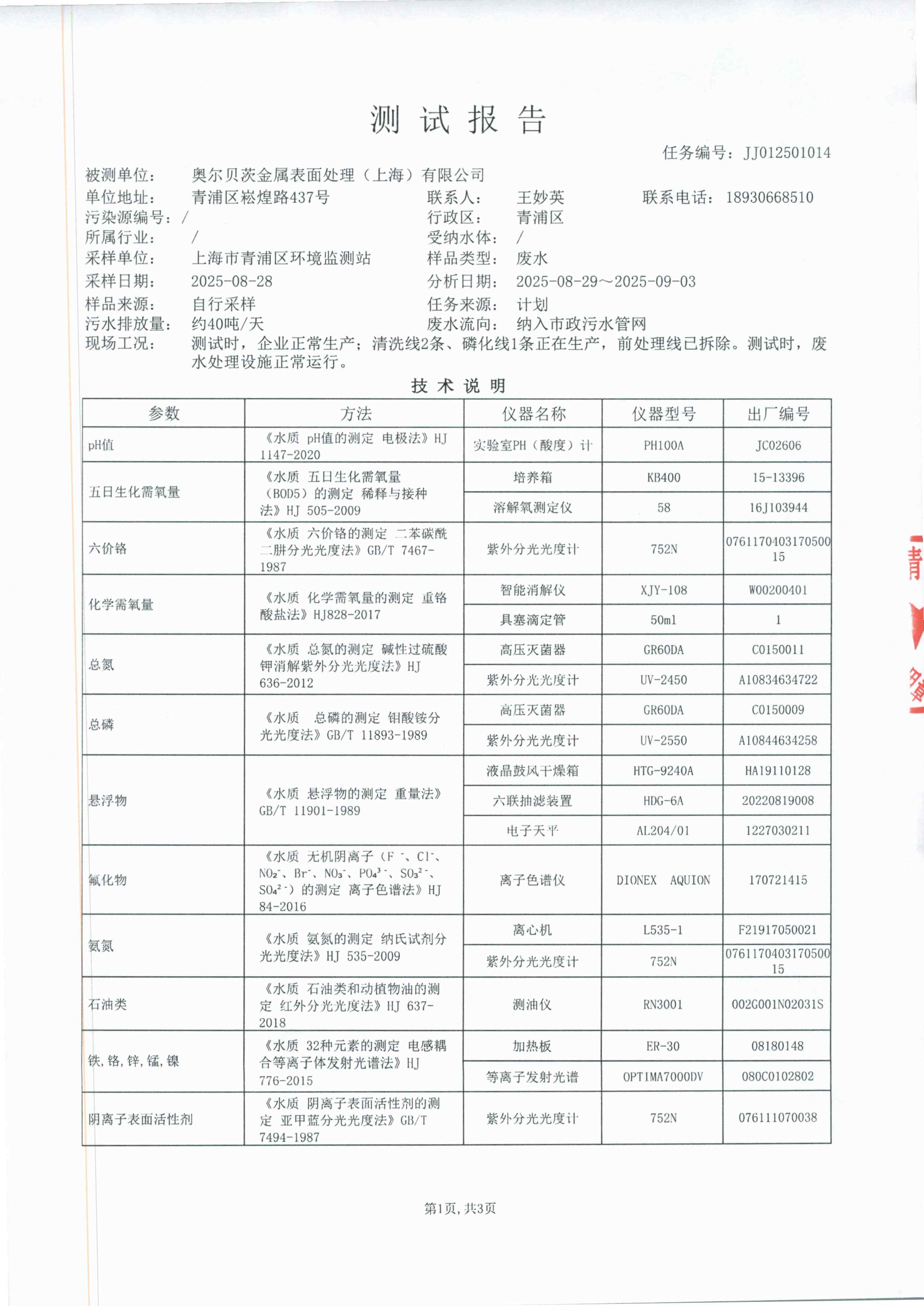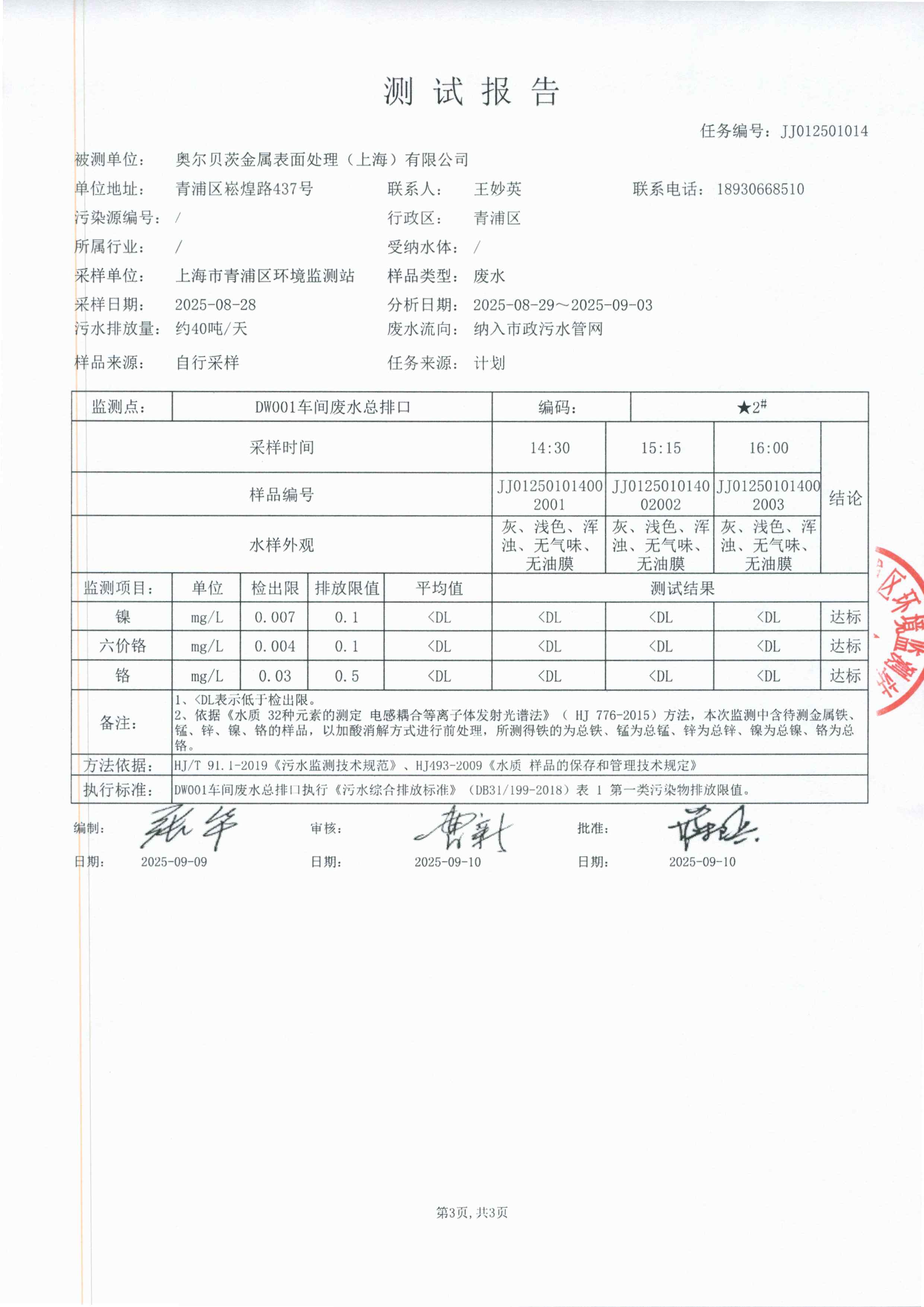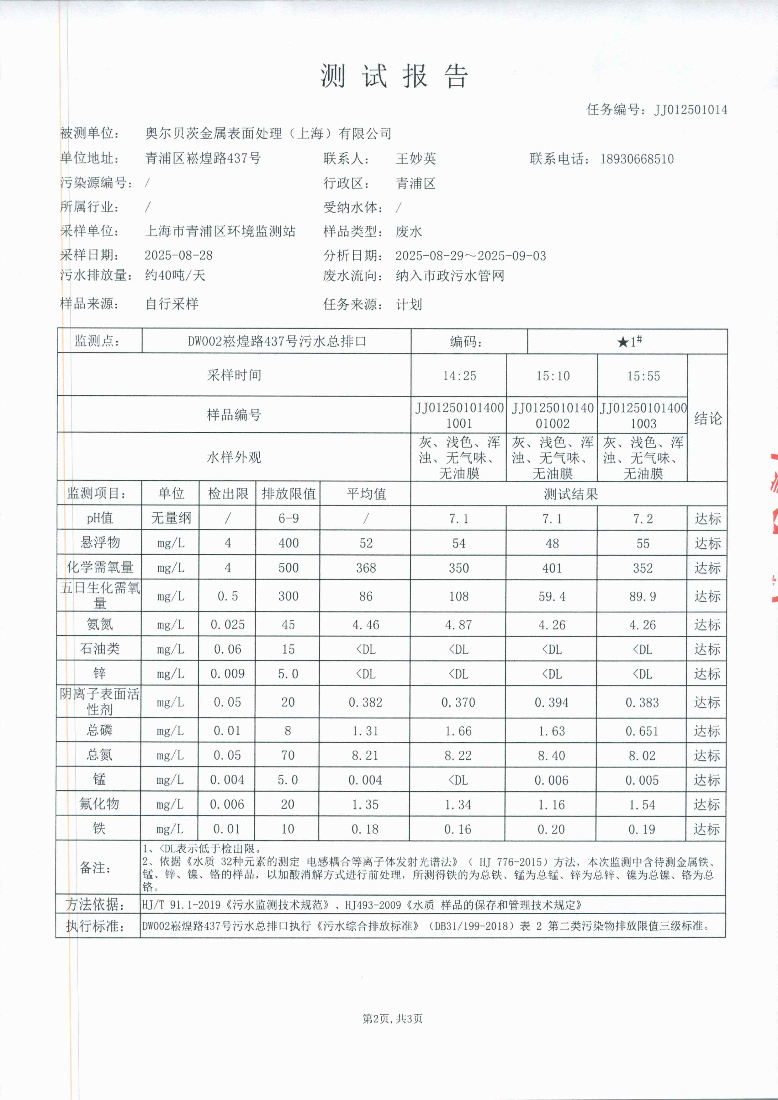 奥尔贝茨金属表面处理(上海)有限公司JJ012501014