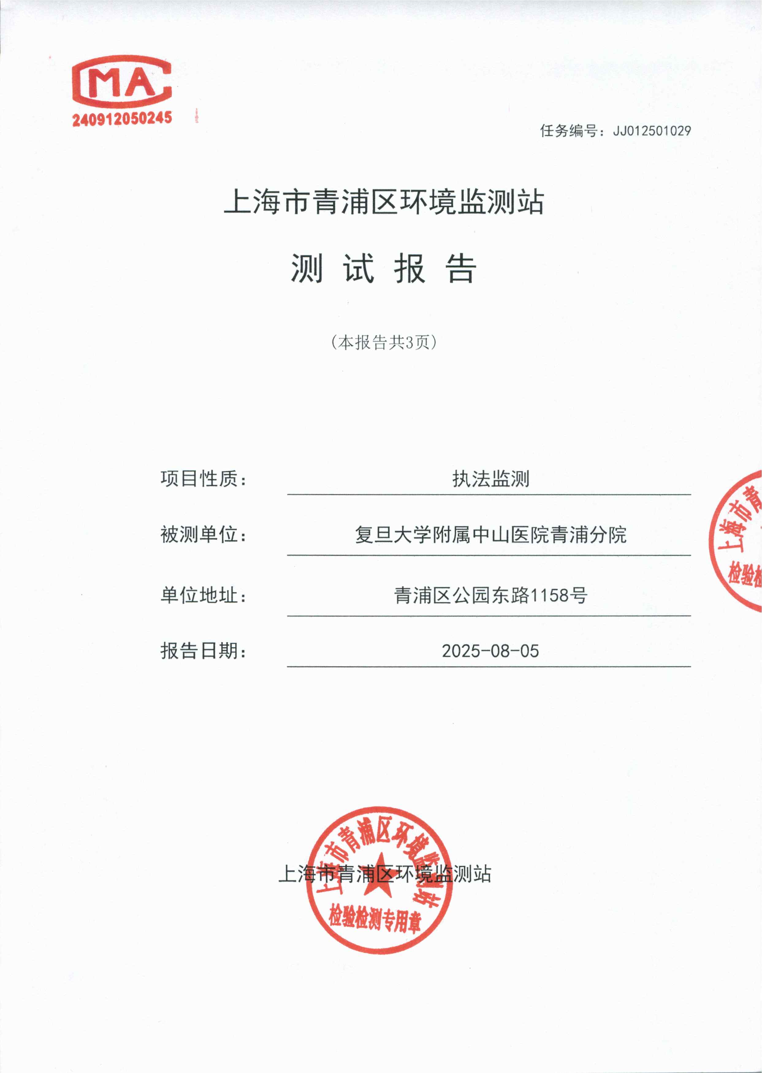 复旦大学附属中山医院青浦分院JJ012501029