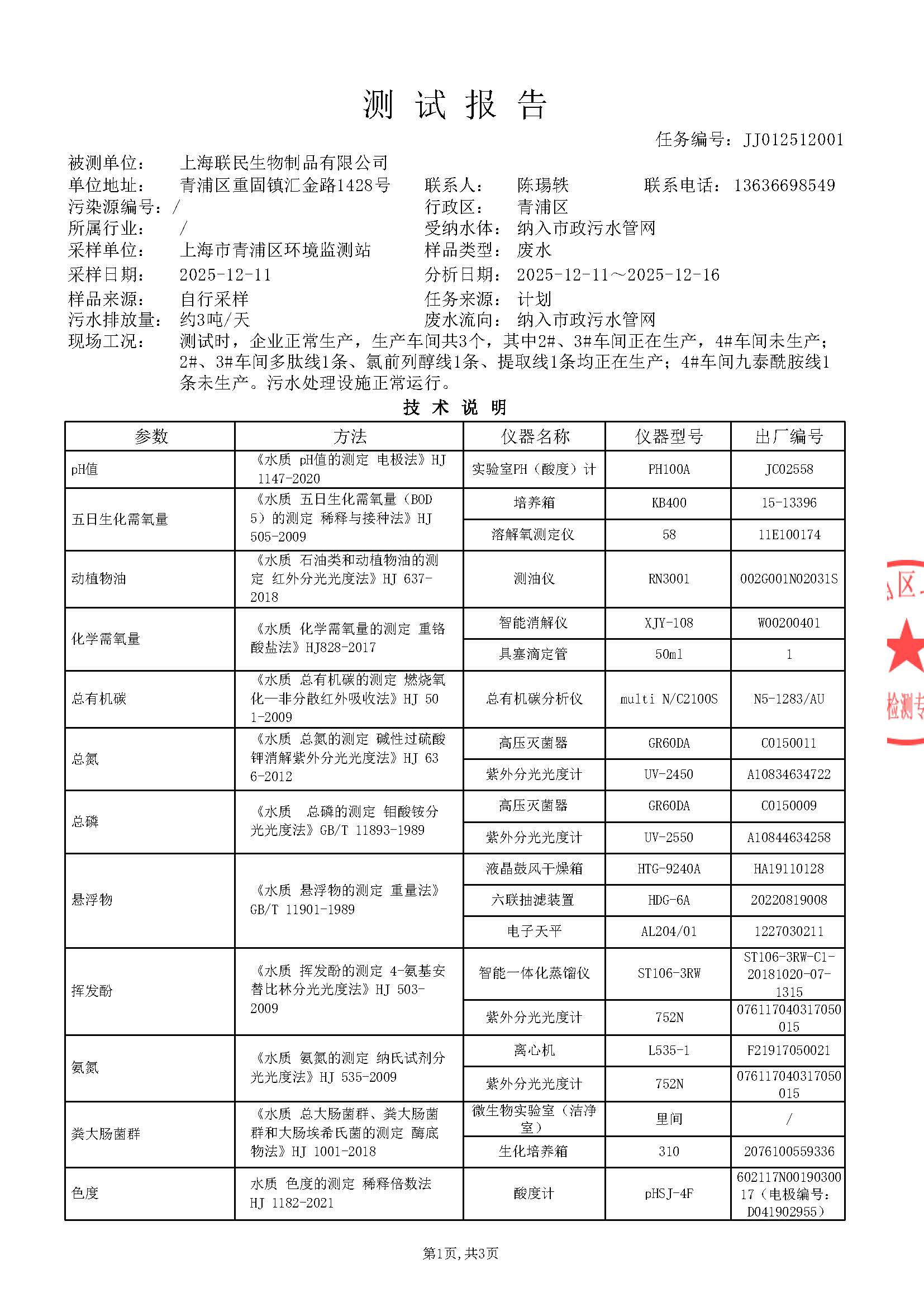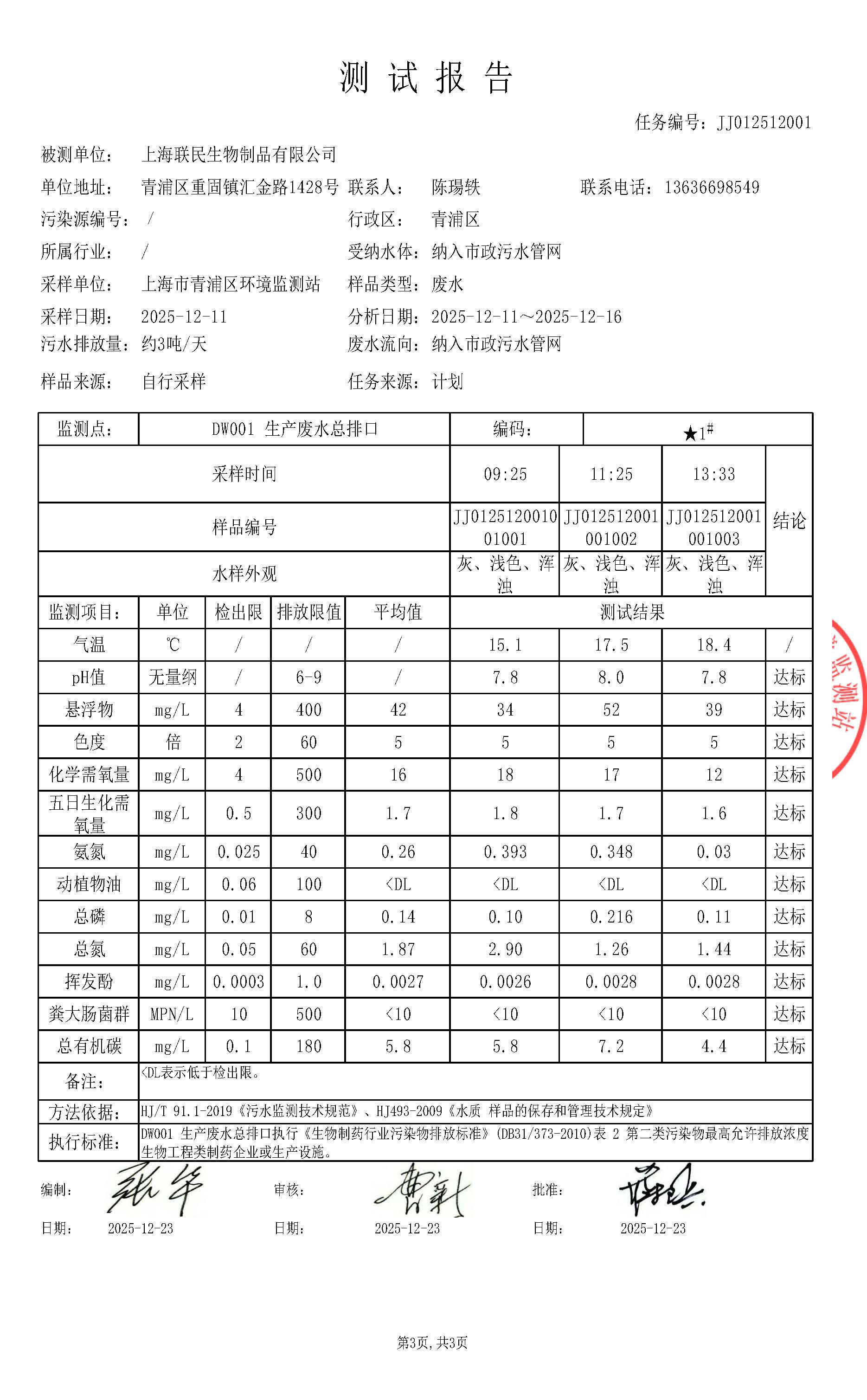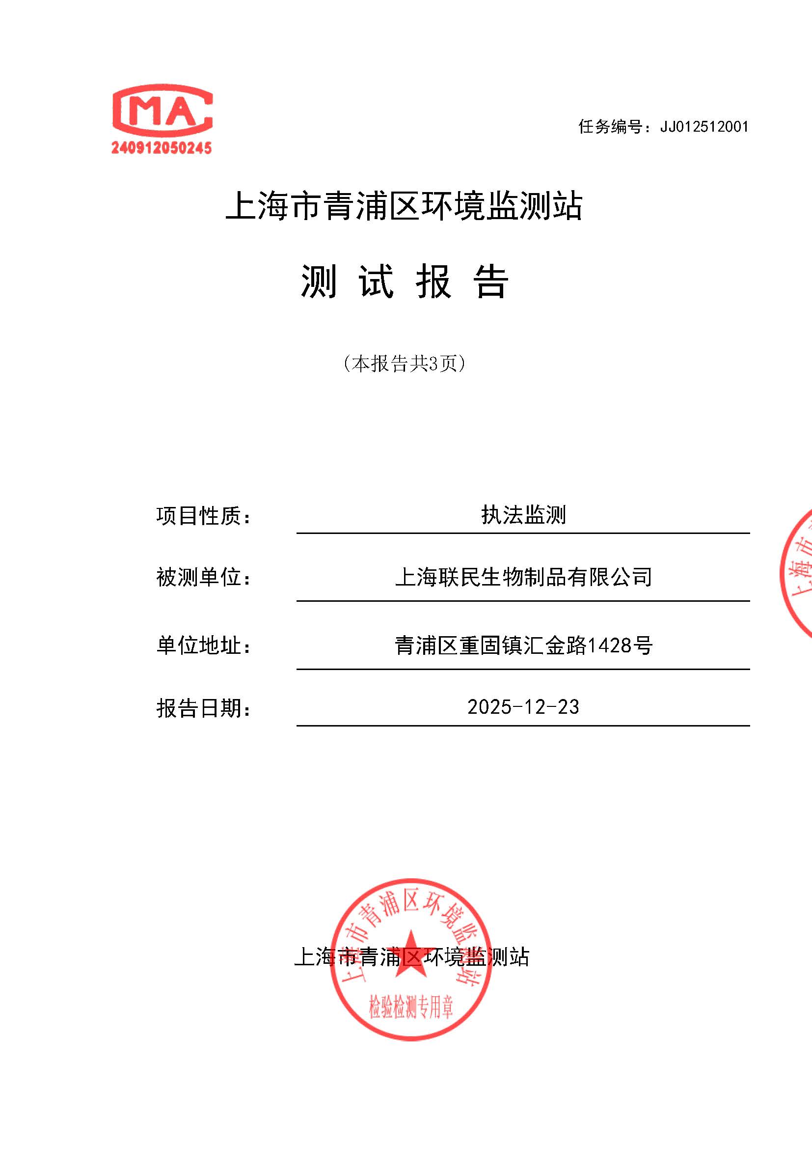 上海联民生物制品有限公司JJ012512001