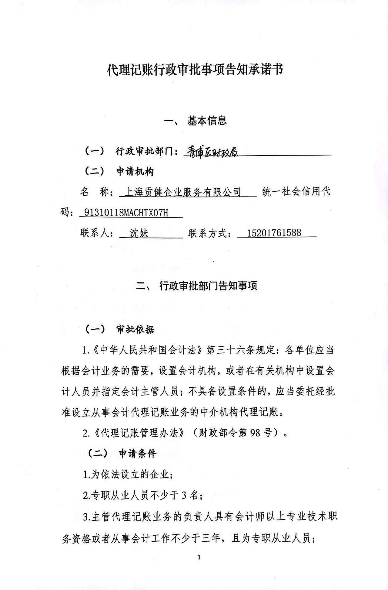 1 | 上海贡健企业服务有限公司 | DLJZ31011820250025 | 2025年9月29日 | 青财会229许准字〔2025〕0025号 |