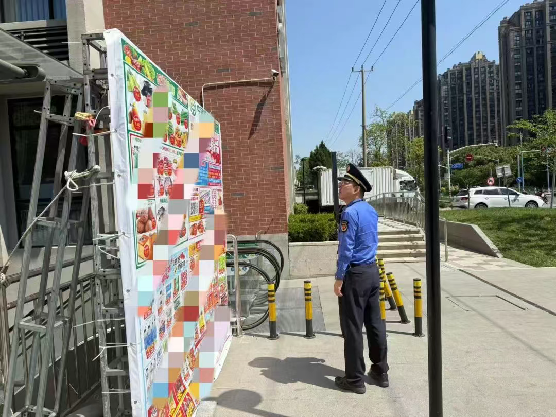 自全域整治工作开展以来,华新镇综合行政执法队启动全域广告牌安全隐患排查行动,将主干道、商圈、社区作为重点区域,创新采取“分片包干+拉网式排查”的勤务模式,执法队员分片负责、逐街推进,对华新街、光明荟、博隆广场等商铺密集区的每一块广告牌逐一核查,针对“一店多招”、未经审批、破损老化等违规问题分类标注风险等级,明确整改对象和时间节点,确保排查无遗漏、数据全掌握,为后续精准整治打下坚实基础。