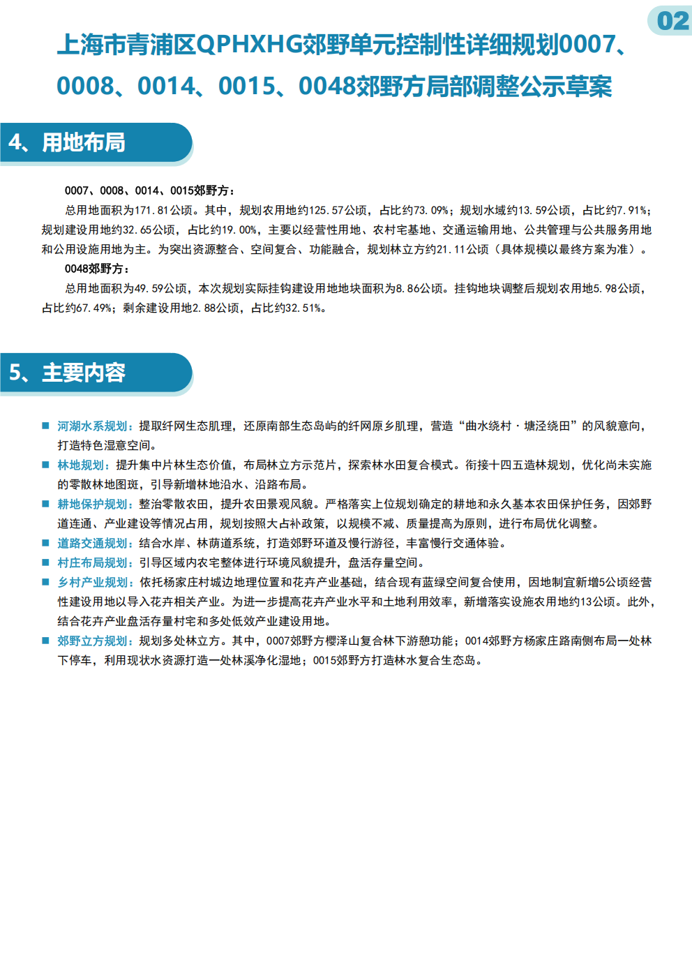 上海市青浦区QPHXHG郊野单元控制性详细规划0007、 0008、0014、0015、0048郊野方局部调整公示草案