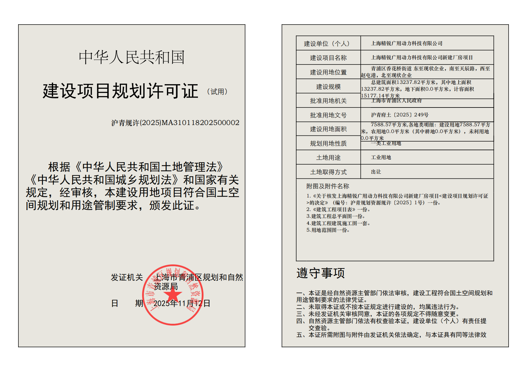 根据《中华人民共和国城乡规划法》、《上海市城乡规划条例》等有关规定,现对沪青规许(2025)MA310118202500002建设工程规划许可证及其总平面图进行公开。