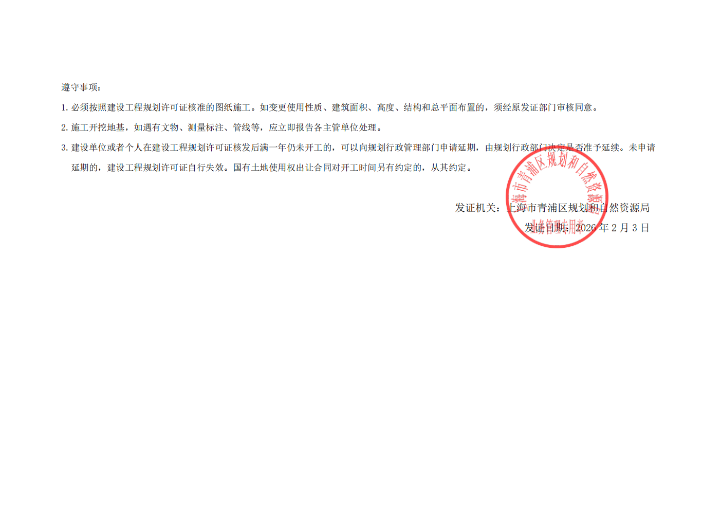 根据《中华人民共和国城乡规划法》、《上海市城乡规划条例》等有关规定,现对沪青建(2026)FC310118202600200号建设工程规划许可证及其总平面图进行公开。
