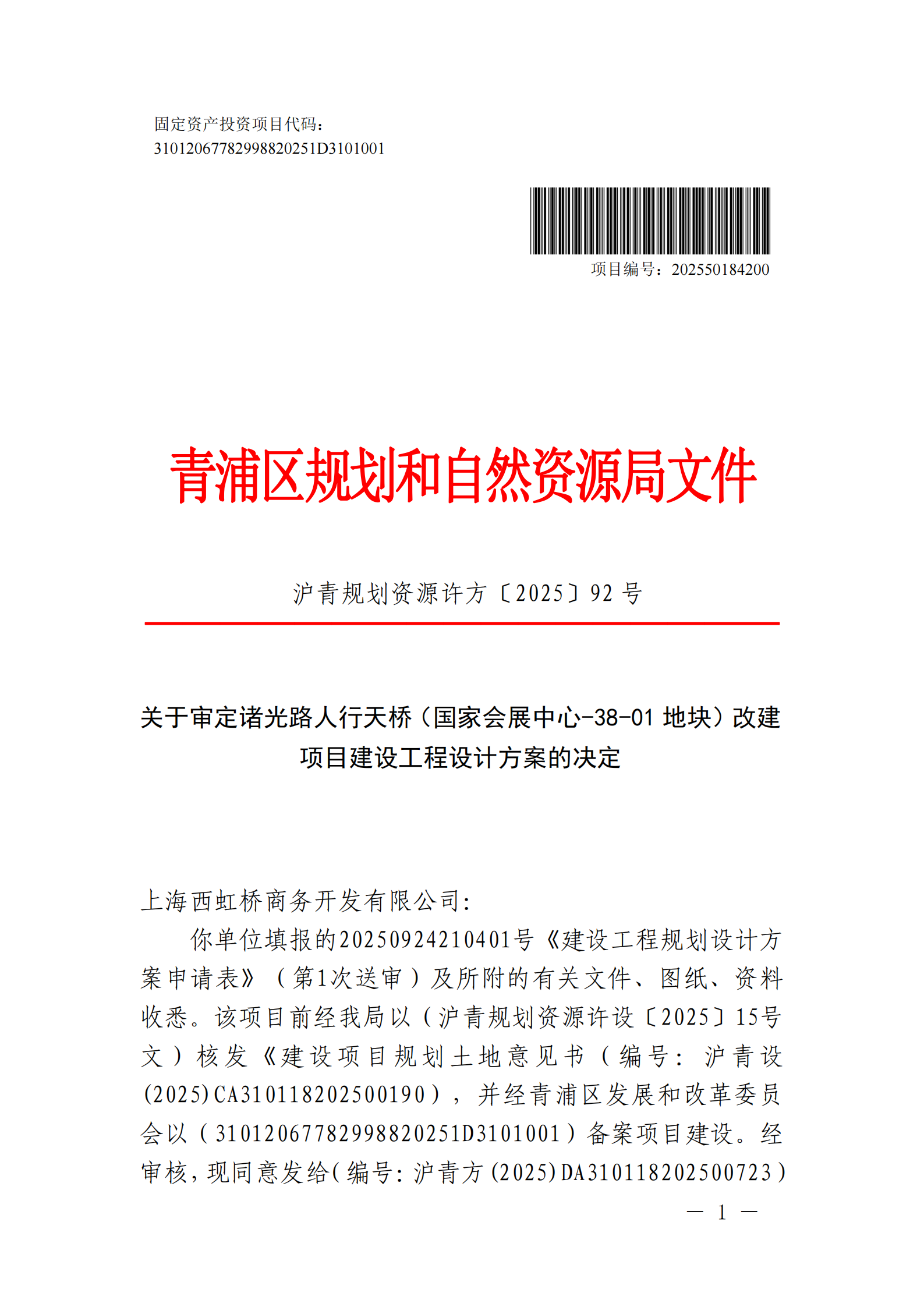 沪青方(2025)DA310118202500723建设工程设计方案(上海西虹桥商务开发有限公司)