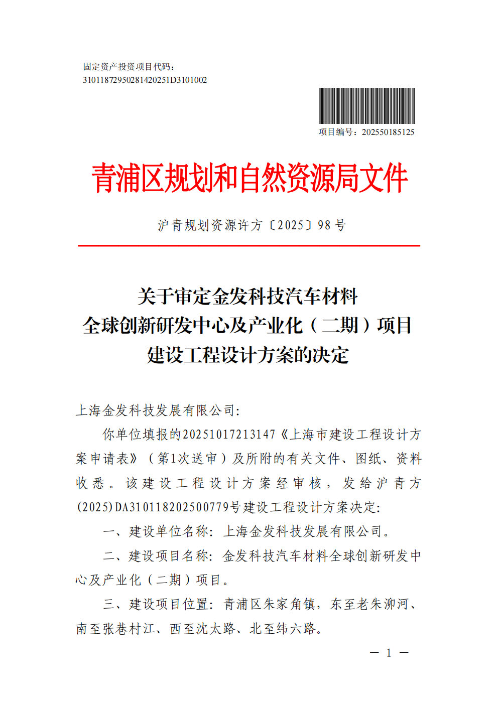 沪青方(2025)DA310118202500779建设工程设计方案(上海金发科技发展有限公司)