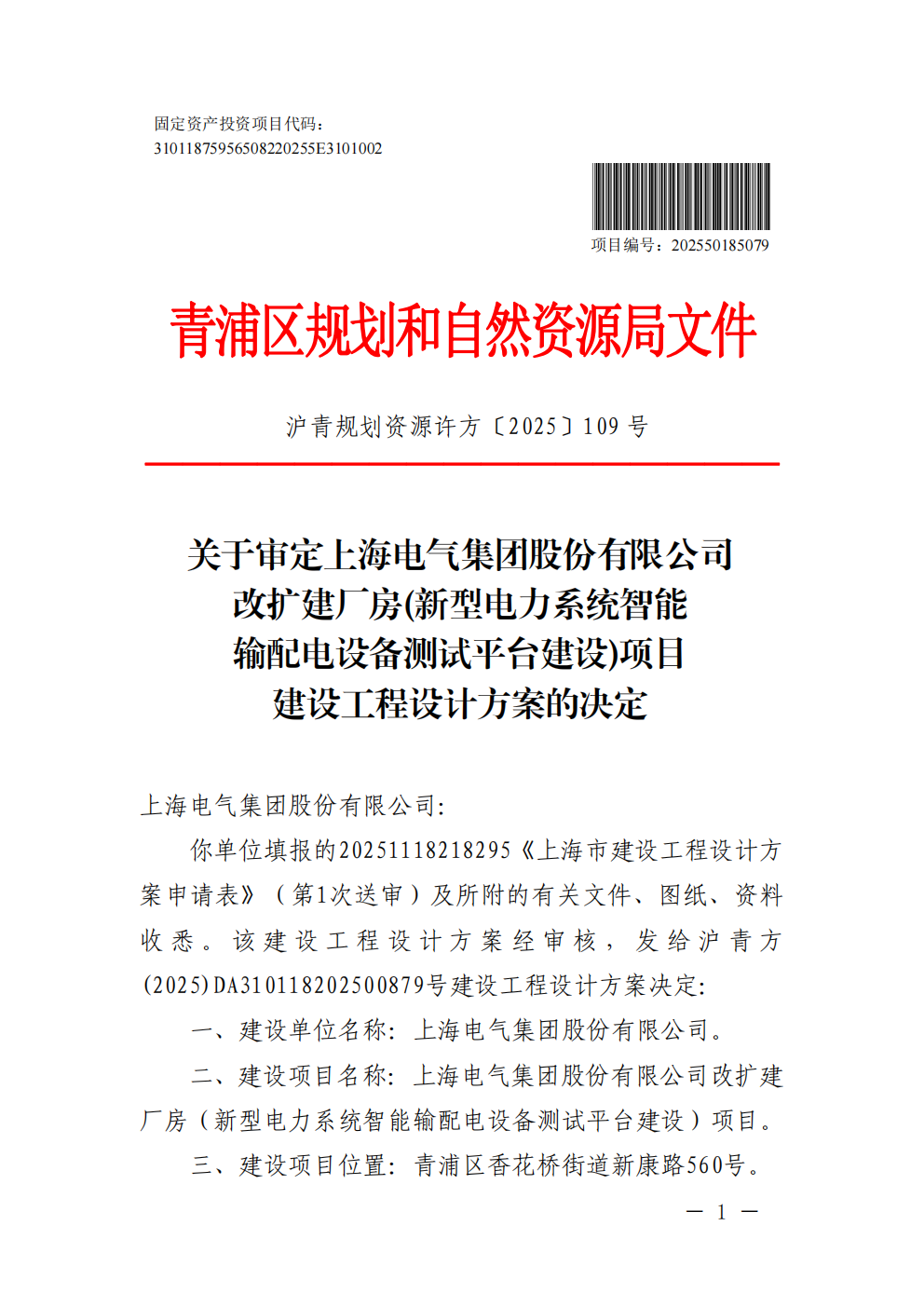 沪青方(2025)DA310118202500879建设工程设计方案(上海电气集团股份有限公司)