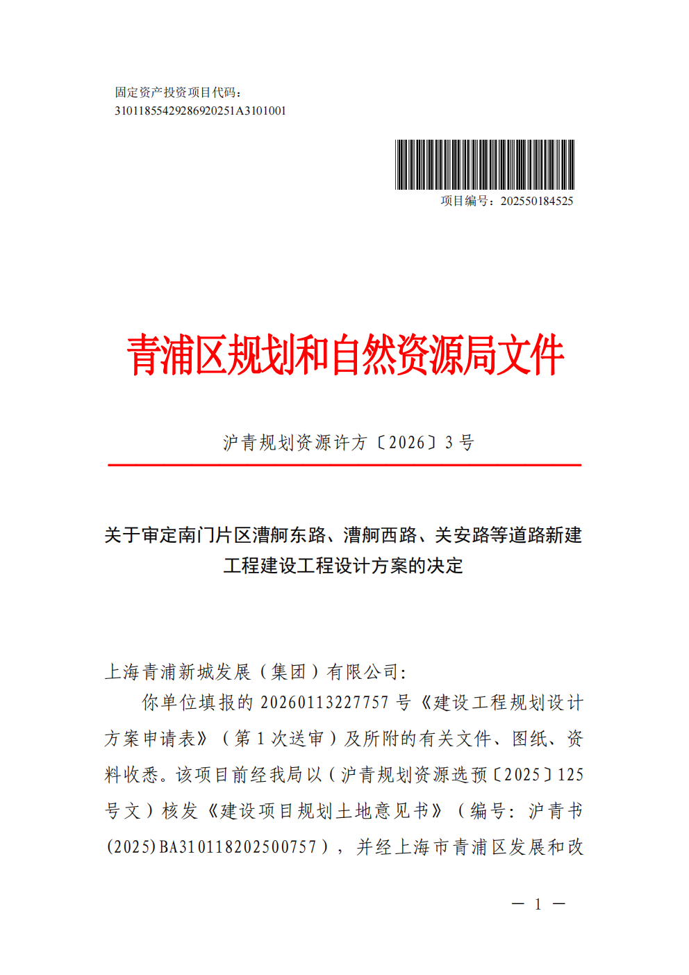 沪青方(2026)DA310118202600028号建设工程设计方案(上海青浦新城发展(集团)有限公司)
