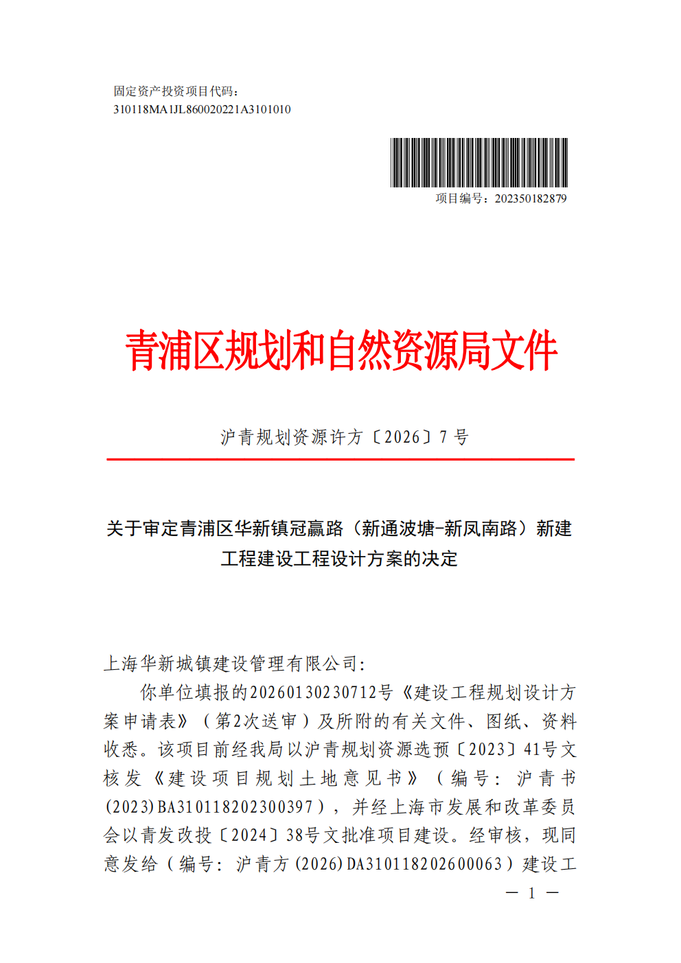沪青方(2026)DA310118202600063号建设工程设计方案(上海华新城镇建设管理有限公司)