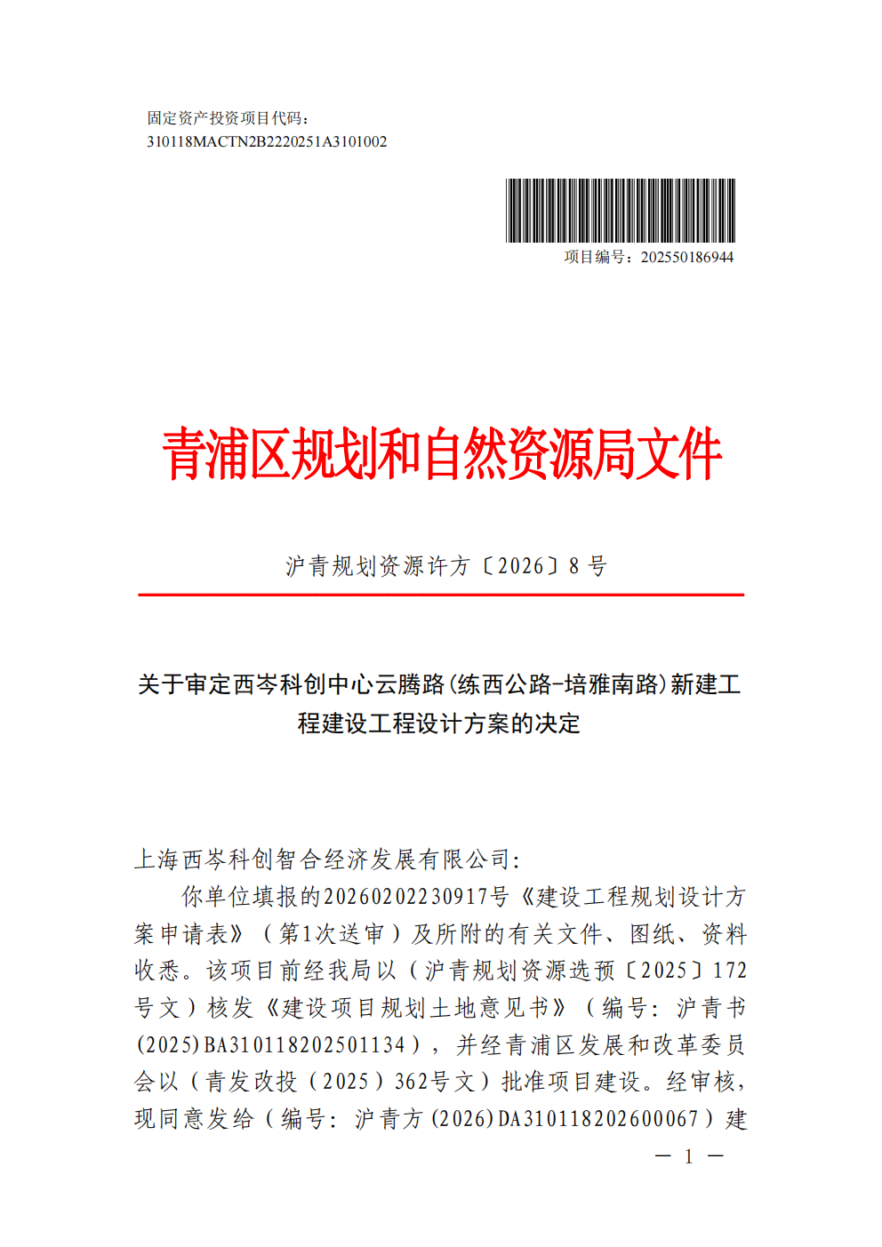 沪青方(2026)DA310118202600067号建设工程设计方案(上海西岑科创智合经济发展有限公司)