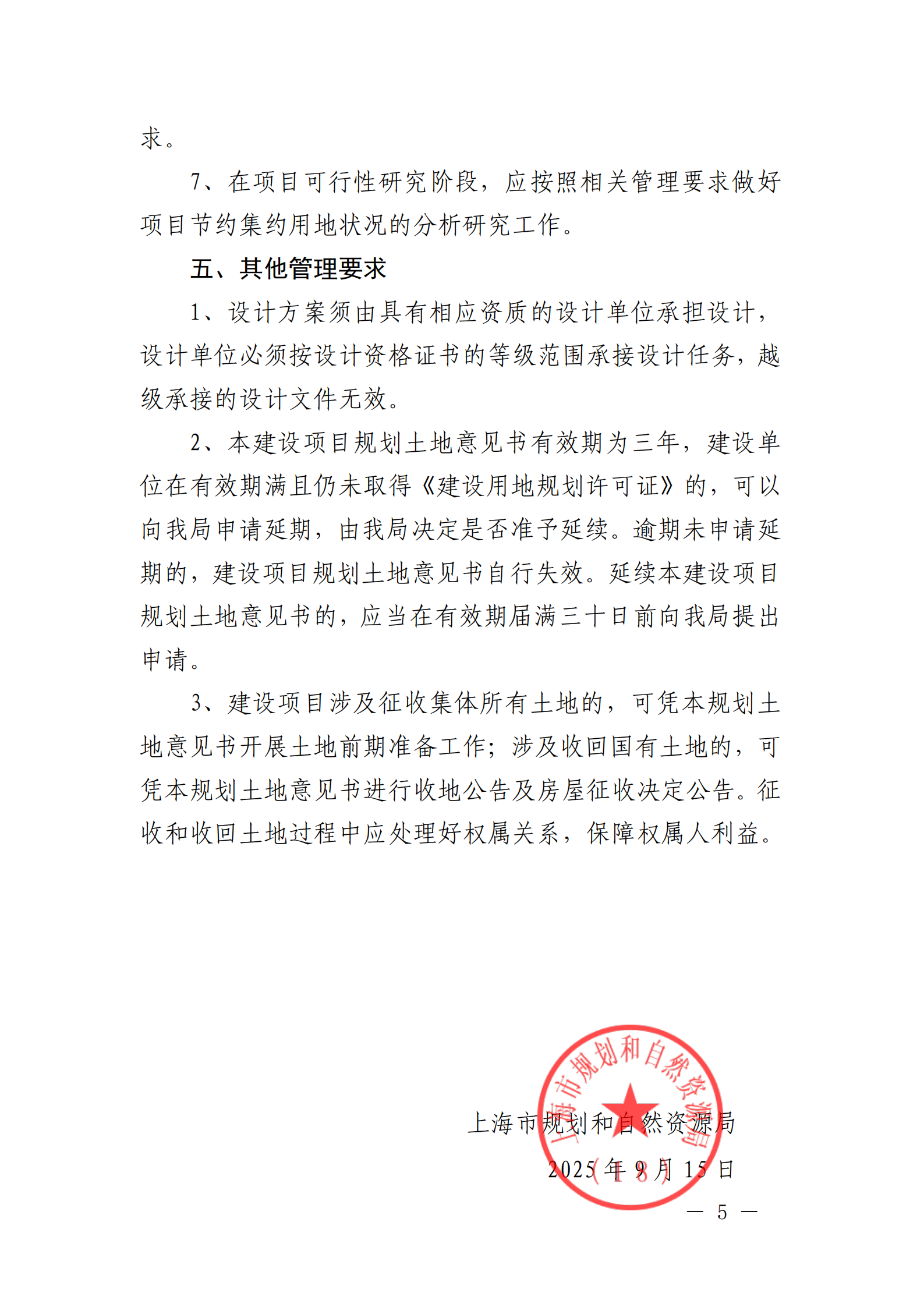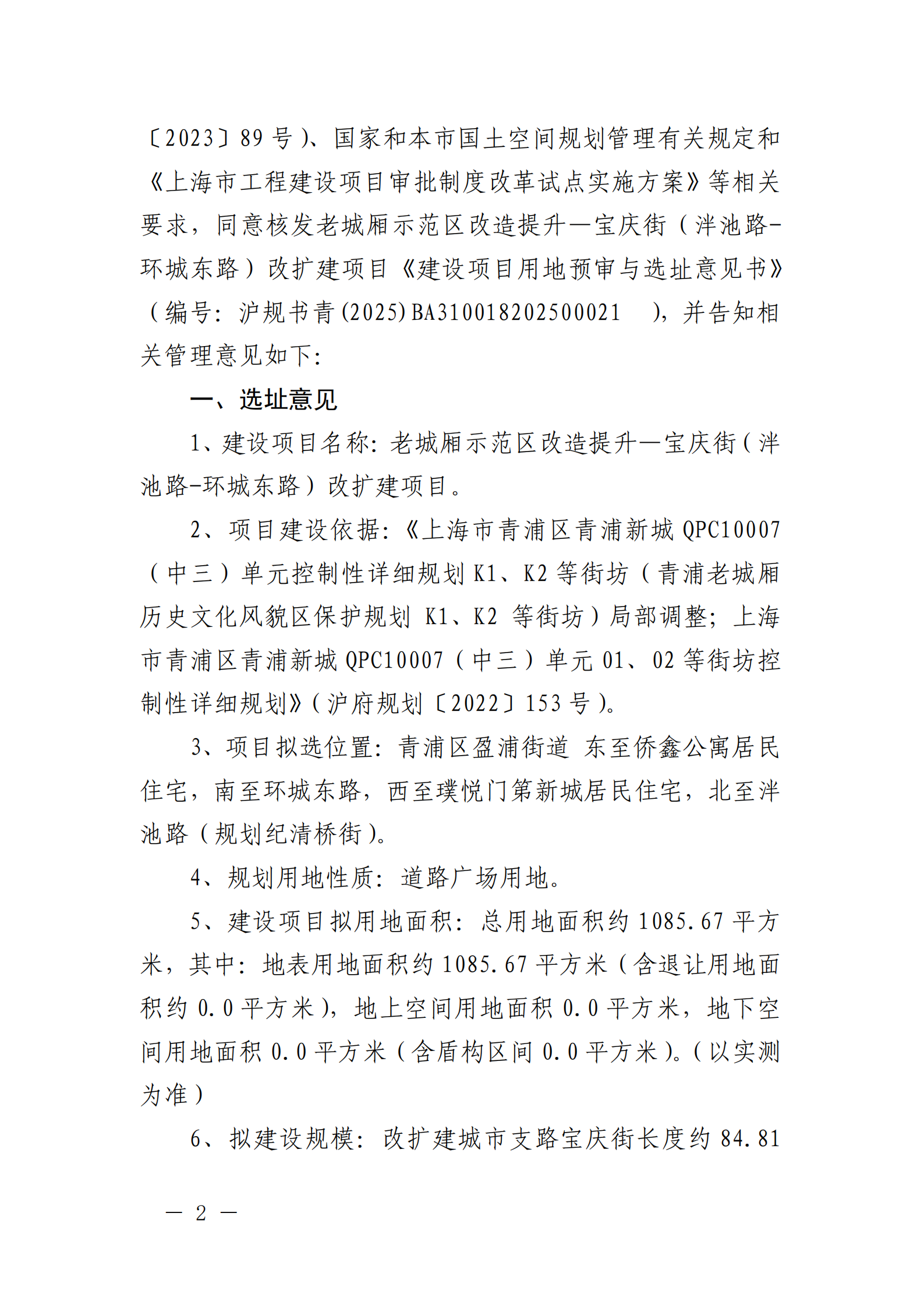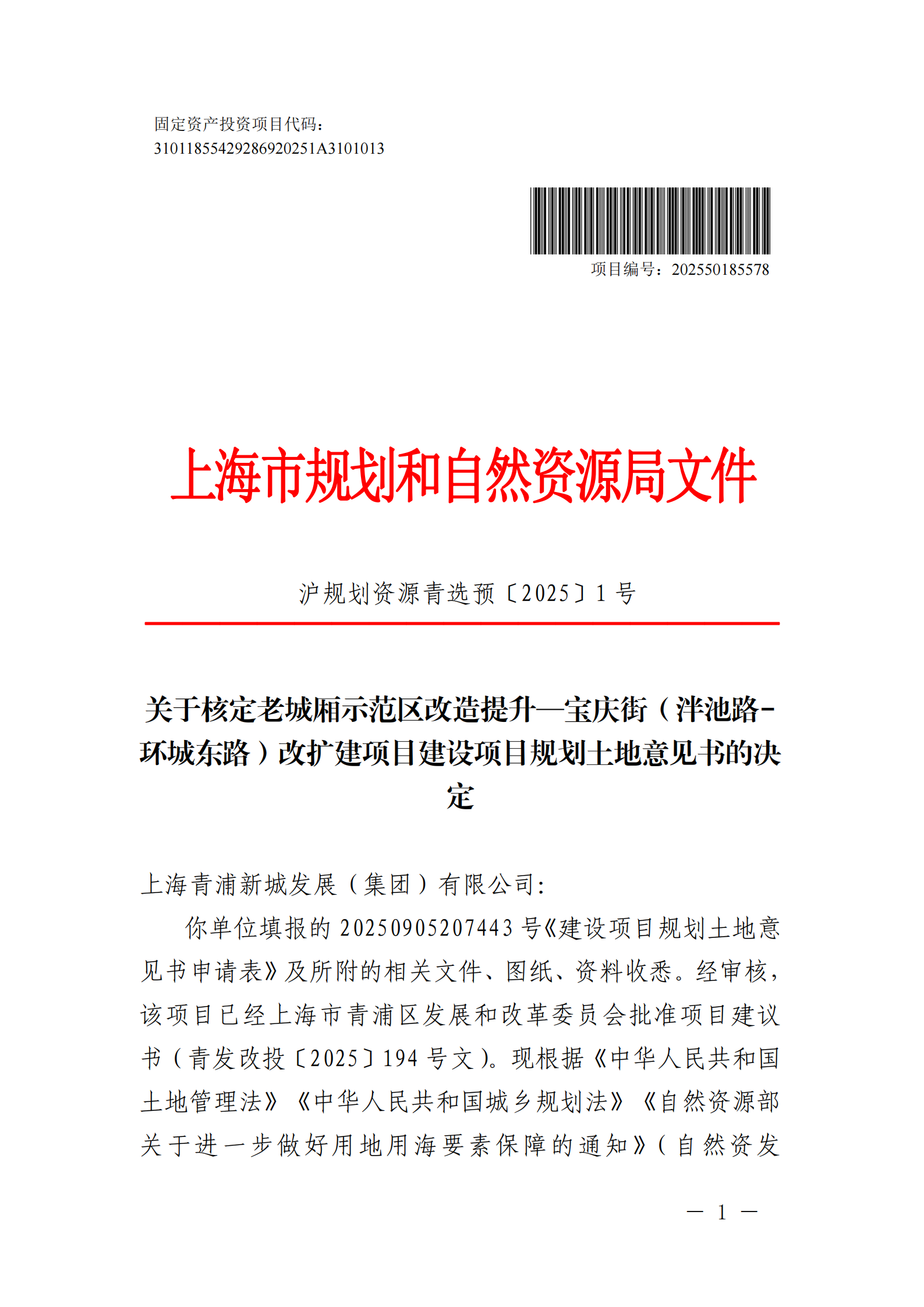 沪规书青(2025)BA310018202500021建设项目用地预审与选址意见书(上海青浦新城发展(集团)有限公司)