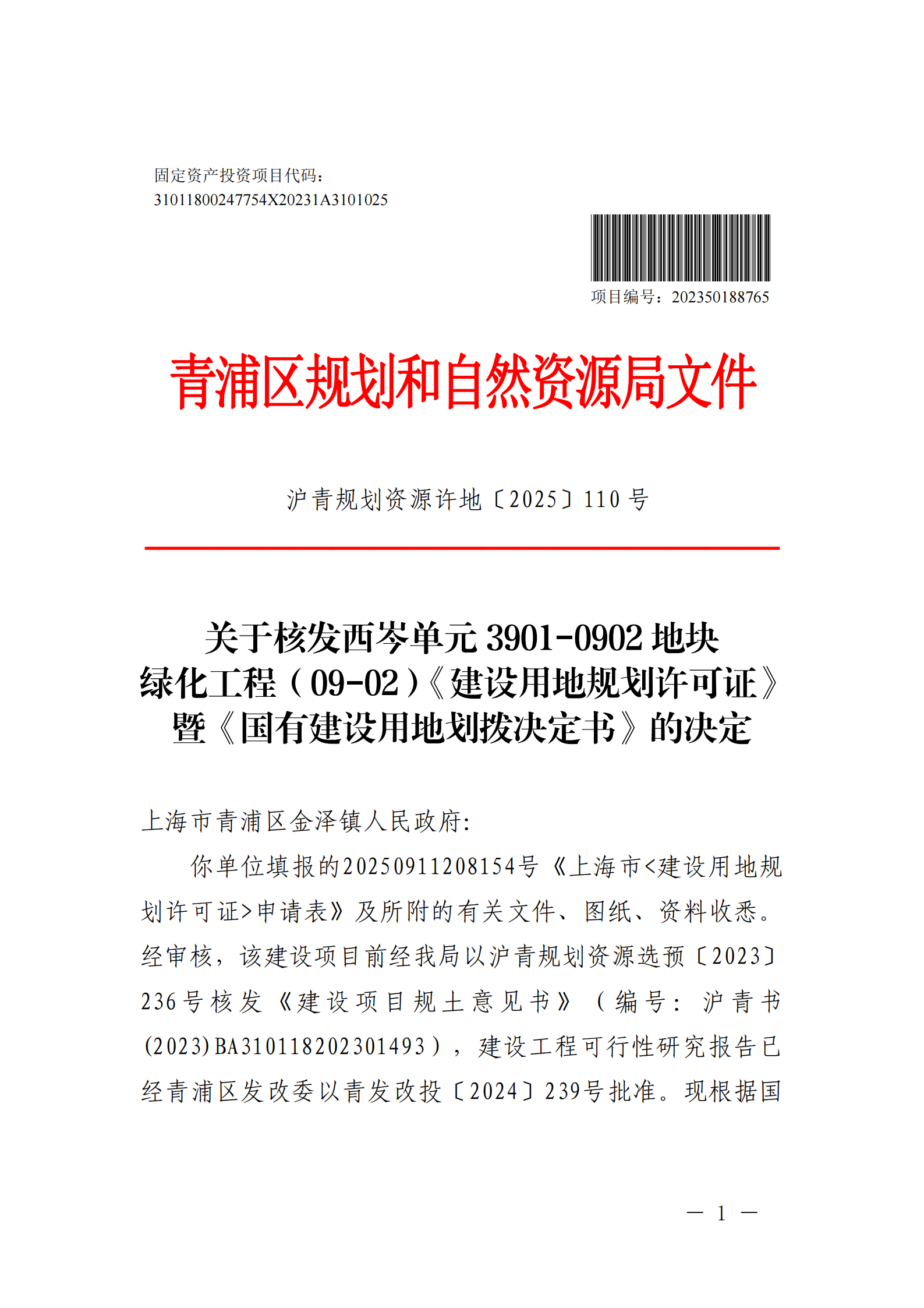 根据《中华人民共和国城乡规划法》、《上海市城乡规划条例》等有关规定,现对沪青地(2025)EA310118202500738建设用地规划许可证进行公开。