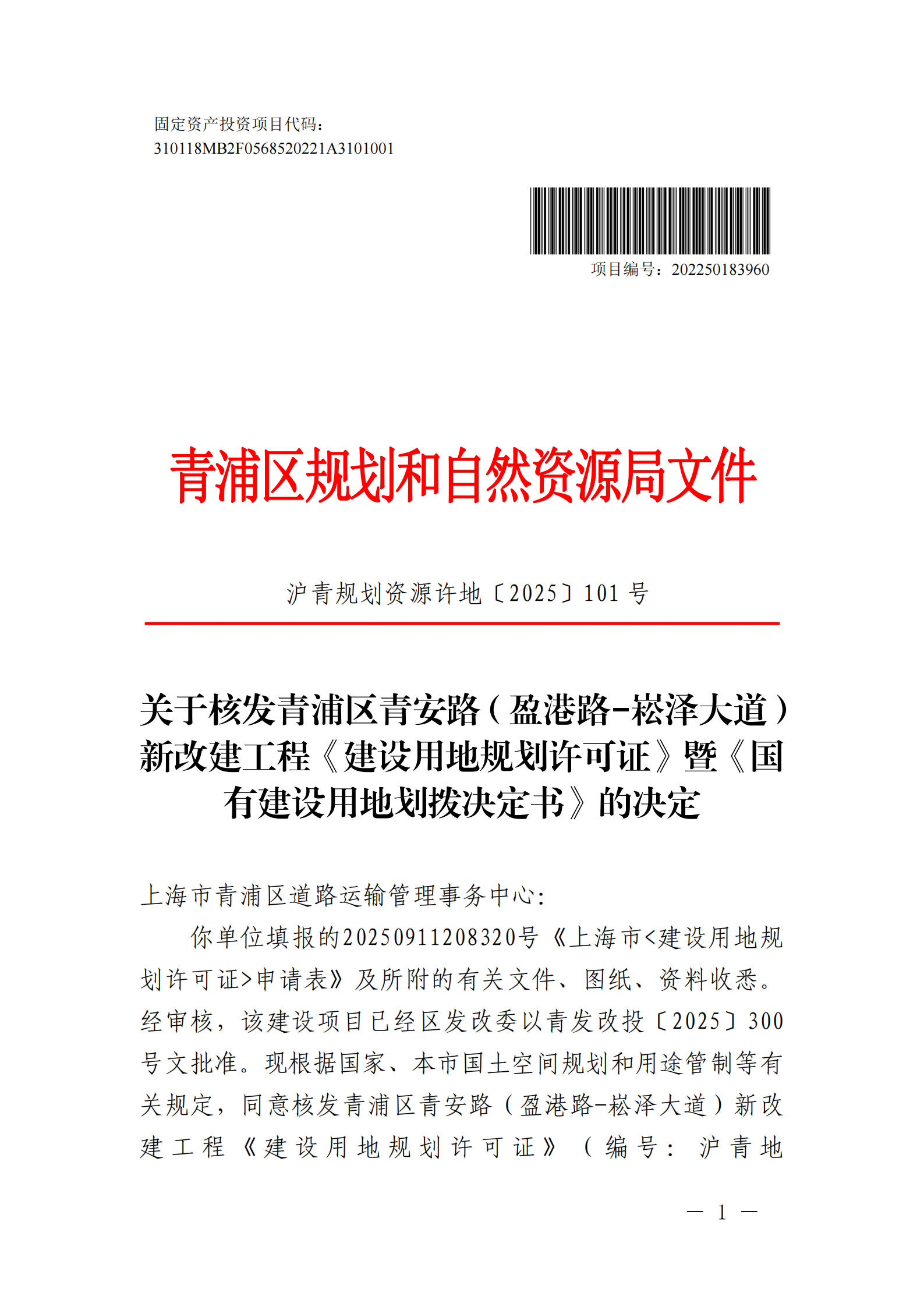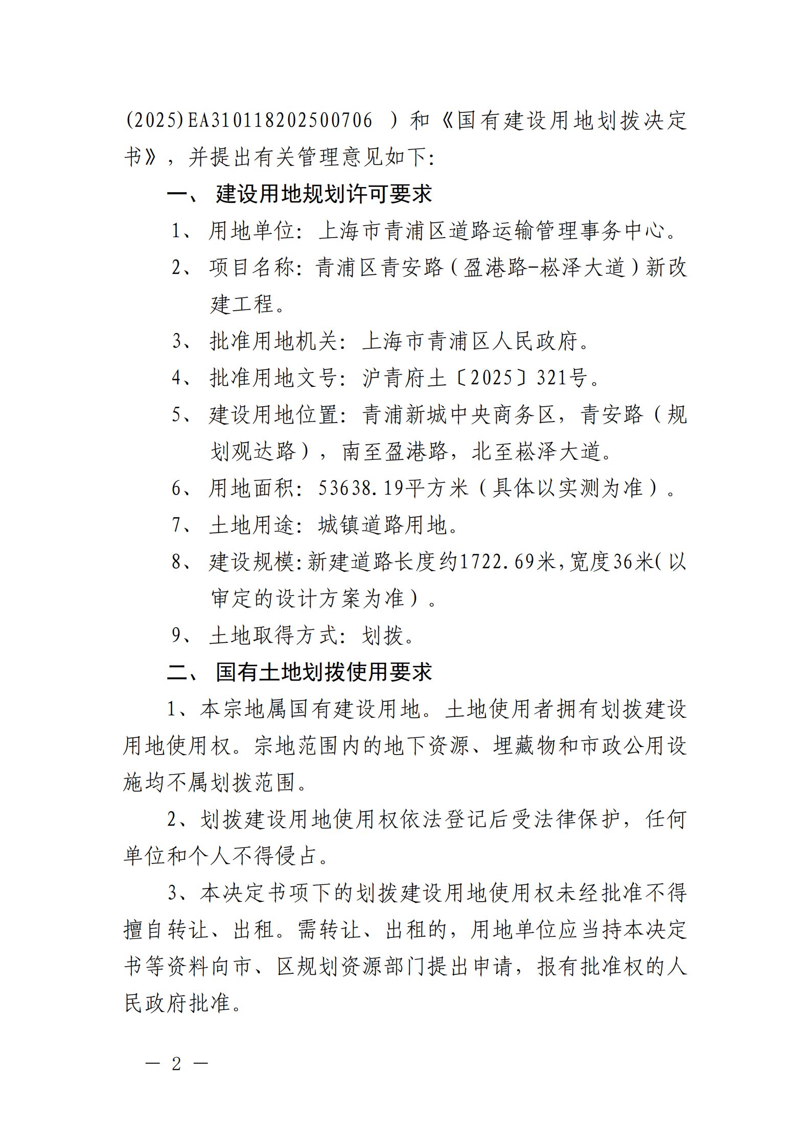 根据《中华人民共和国城乡规划法》、《上海市城乡规划条例》等有关规定,现对沪青地(2025)EA310118202500706建设用地规划许可证进行公开。