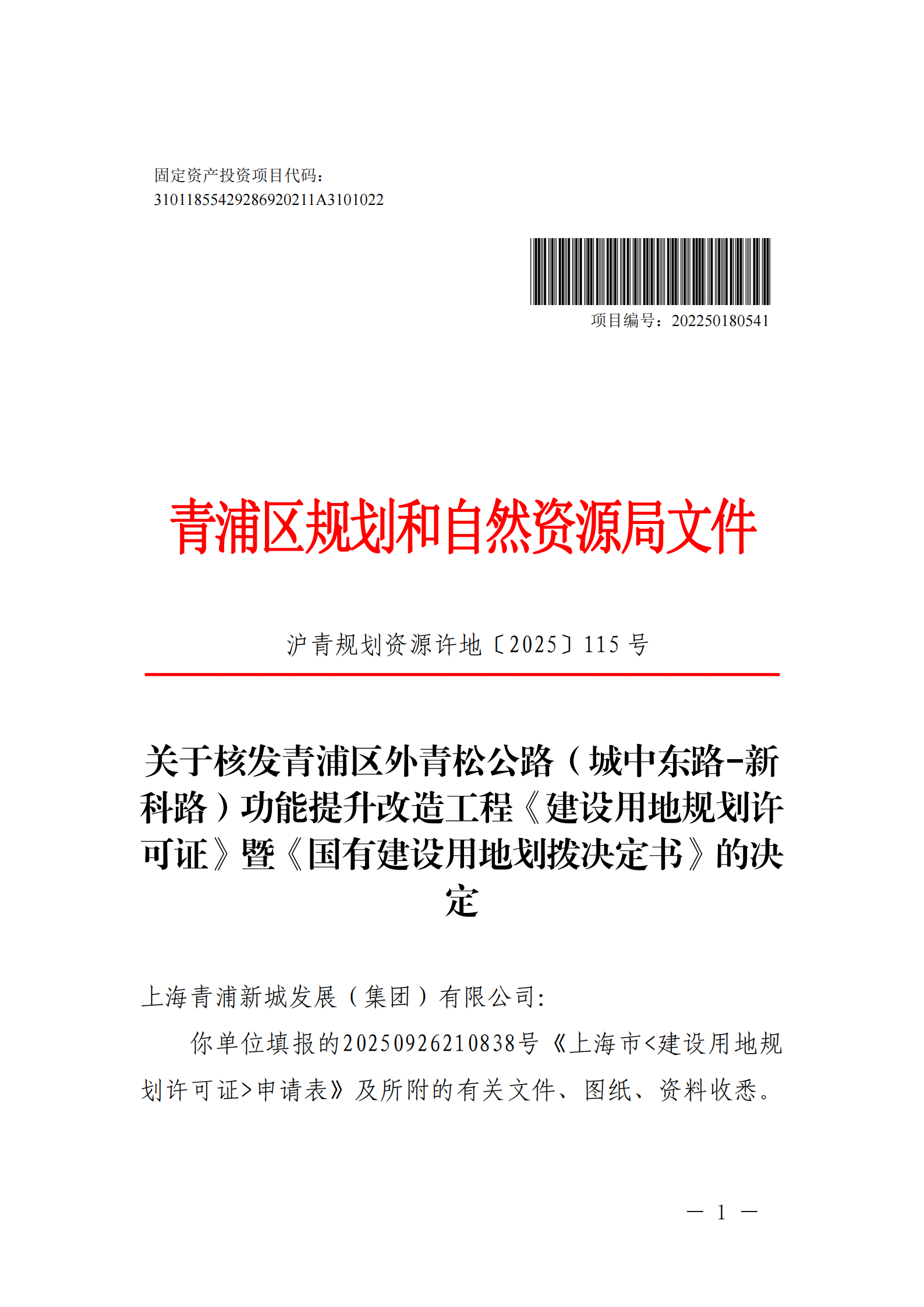 根据《中华人民共和国城乡规划法》、《上海市城乡规划条例》等有关规定,现对沪青地(2025)EA310118202500755建设用地规划许可证进行公开。