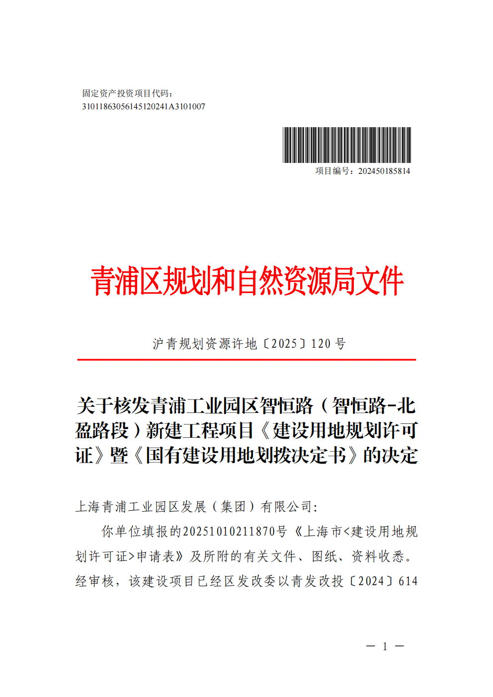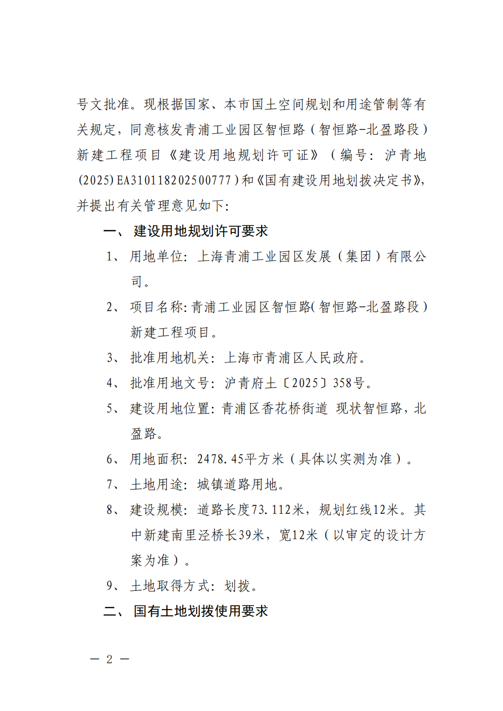 根据《中华人民共和国城乡规划法》、《上海市城乡规划条例》等有关规定,现对沪青地(2025)EA310118202500777建设用地规划许可证进行公开。