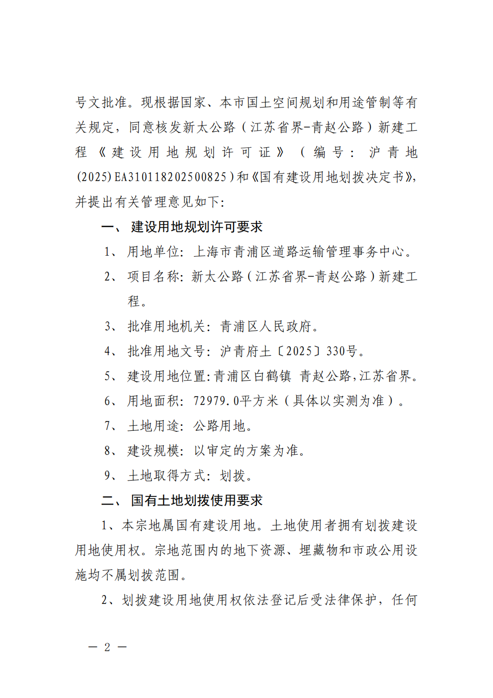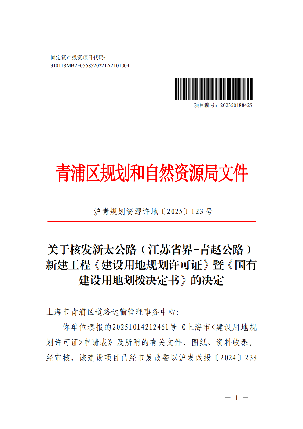 根据《中华人民共和国城乡规划法》、《上海市城乡规划条例》等有关规定,现对沪青地(2025)EA310118202500825建设用地规划许可证进行公开。