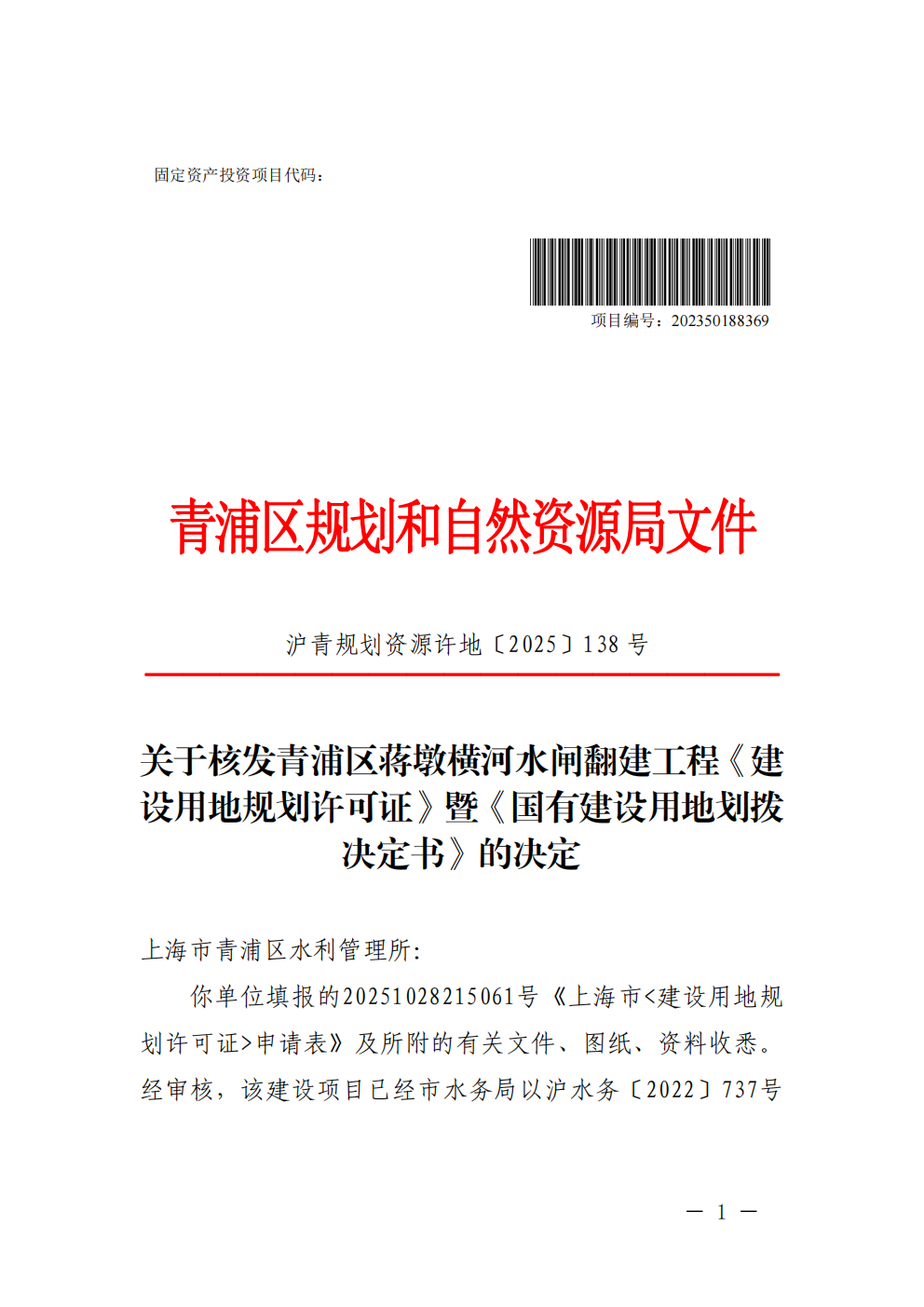 根据《中华人民共和国城乡规划法》、《上海市城乡规划条例》等有关规定,现对沪青地(2025)EA310118202500889建设用地规划许可证进行公开。