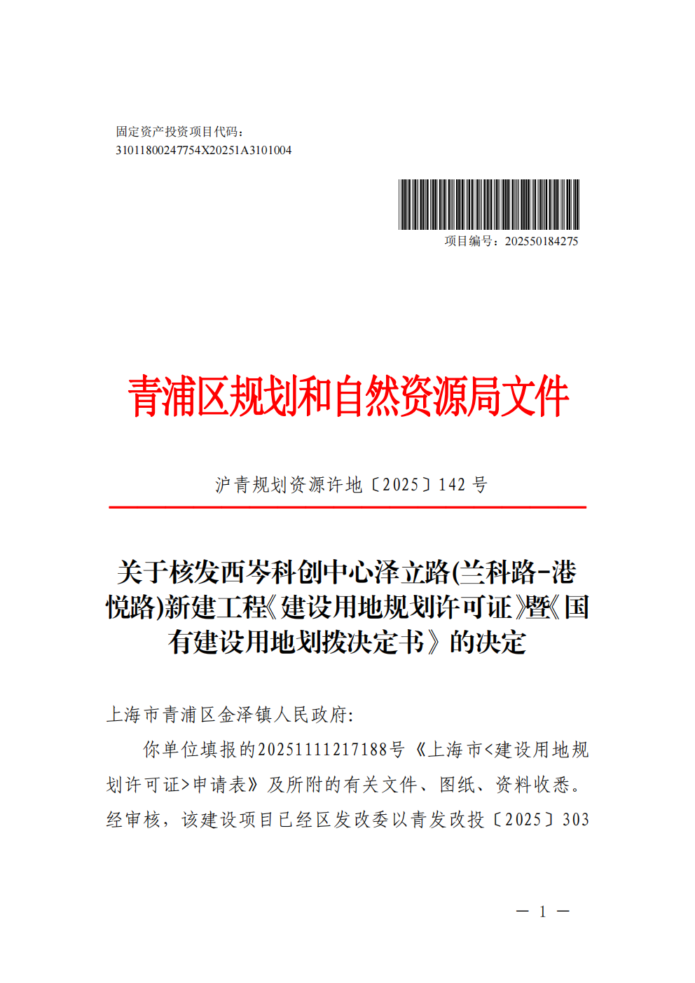 根据《中华人民共和国城乡规划法》、《上海市城乡规划条例》等有关规定,现对沪青地(2025)EA310118202500911建设用地规划许可证进行公开。