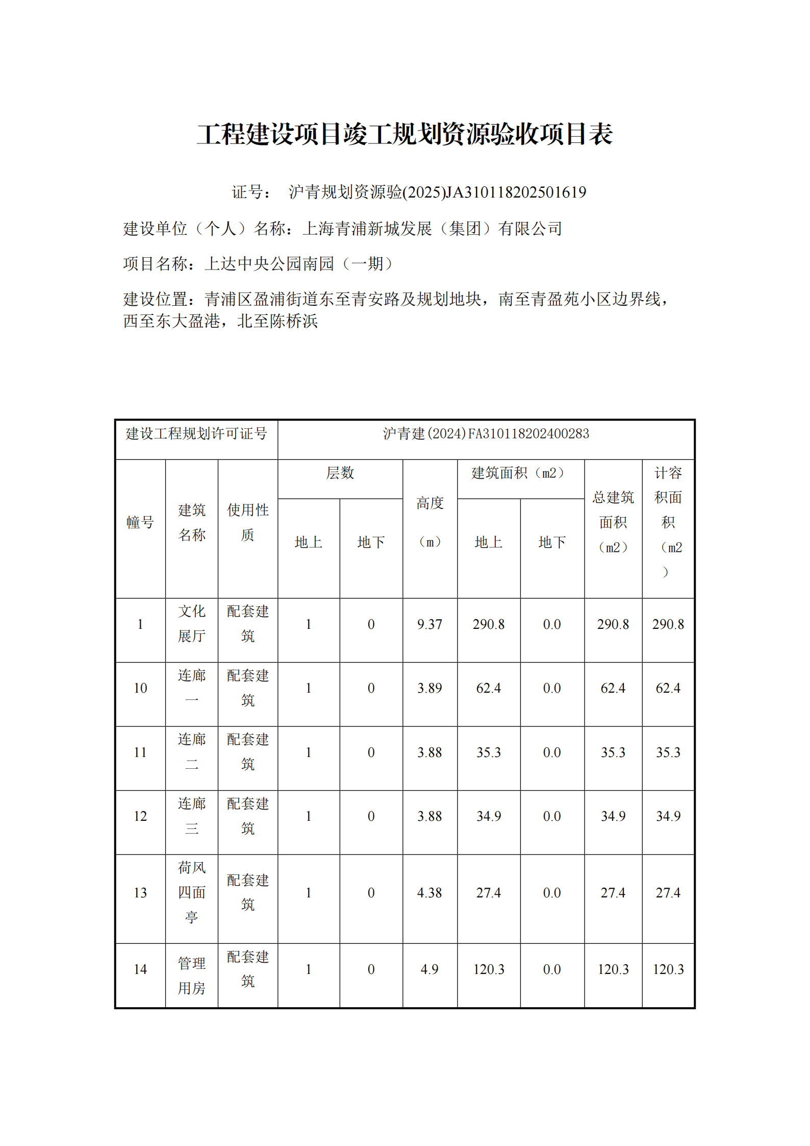 沪青规划资源验 (2025)JA310118202501619上海市工程建设项目竣工规划资源验收合格证(上海青浦新城发展(集团)有限公司)