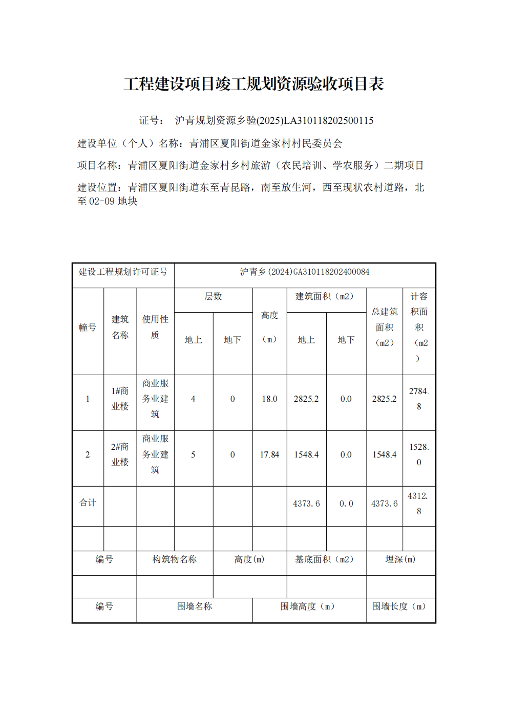 沪青规划资源乡验(2025)LA310118202500115上海市工程建设项目竣工规划资源验收合格证(青浦区夏阳街道金家村村民委员会)