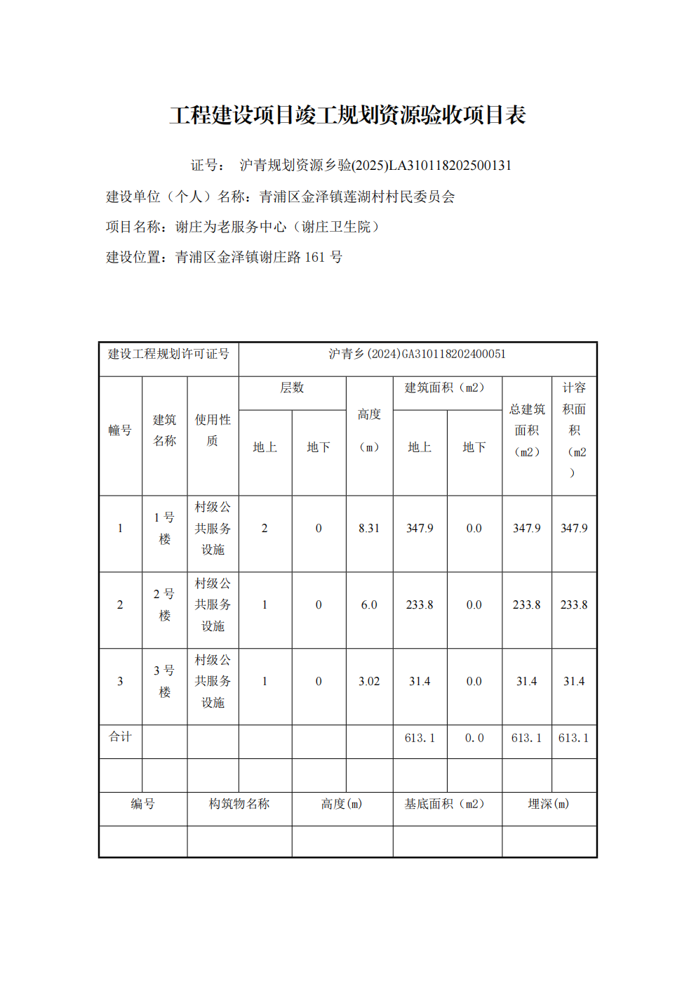 沪青规划资源乡验 (2025)LA310118202500131上海市工程建设项目竣工规划资源验收合格证(青浦区金泽镇莲湖村村民委员会)