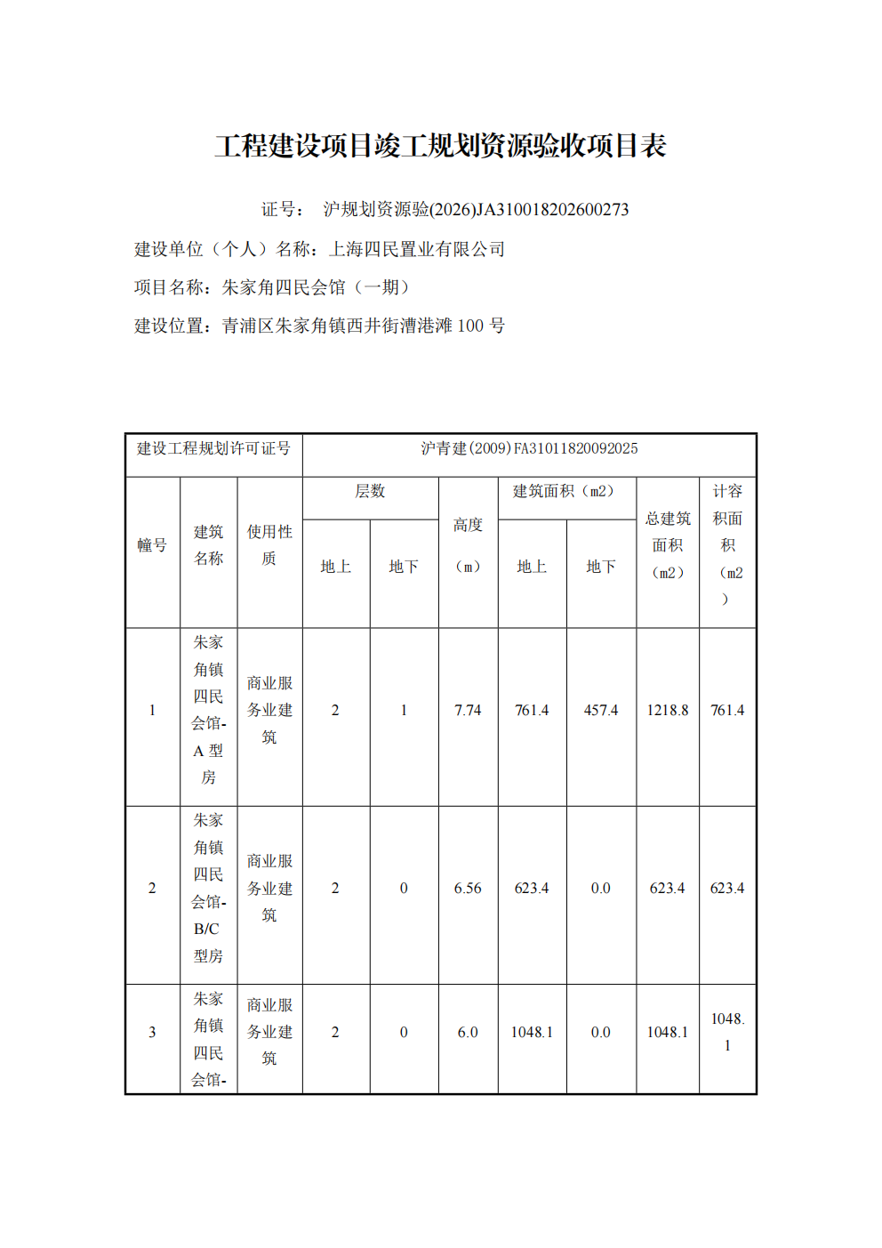 沪规划资源验 (2026)JA310018202600273上海市工程建设项目竣工规划资源验收合格证(上海唐诚科技有限公司)