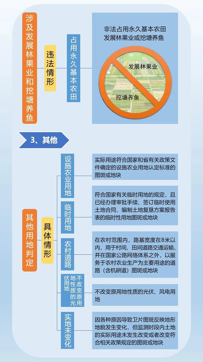 形成卫片图斑后,可根据自然资源部网站发布关于印发《土地卫片执法图斑合法性判定规则》的通知,通过以下四张图查询卫片图斑属于哪一类,符合合法情形可进行举证消除违法状态,违法违规情形务必及时完成图斑整改工作,具体如下: