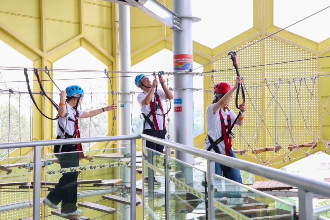 下午,全体学员奔赴东方绿舟开展素质拓展训练。一系列精心设计的团队挑战项目,迅速打破了学员们初识的拘谨。在协作与竞赛中,两地青年干部“毗邻一家亲”的氛围愈发浓厚。拓展结束后,学员们就地开展了“一体化高质量发展”学员沙龙,结合本单位实际与首日所学,进行了初步的思想碰撞。