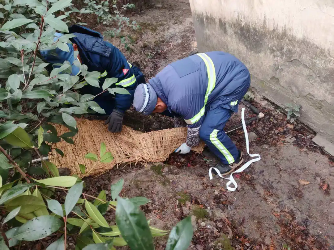 寒潮未至,防备先行。环卫工人们早早行动起来——为公厕水管仔细包裹保温层。在公厕、道班房门口及易滑路段铺上防滑垫,让每位进出的人脚下稳当。同时,给中转站的水管、消防栓也穿好“冬装”,确保关键设施安然过冬。