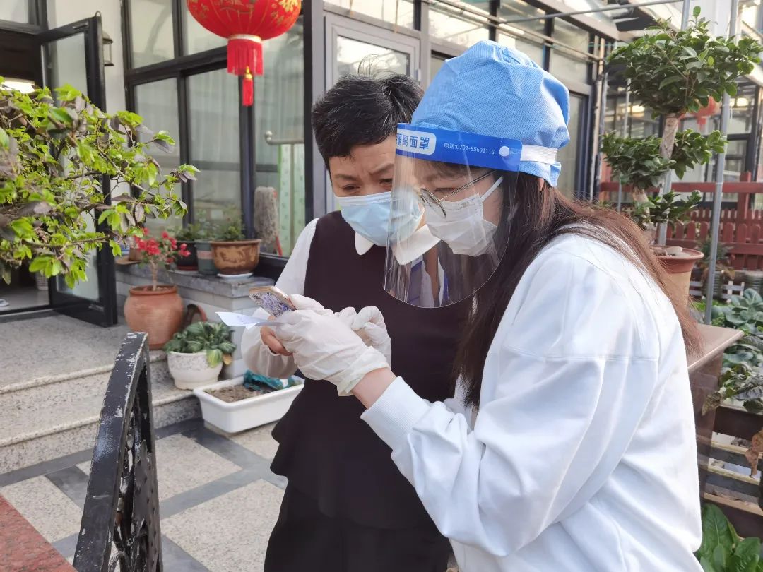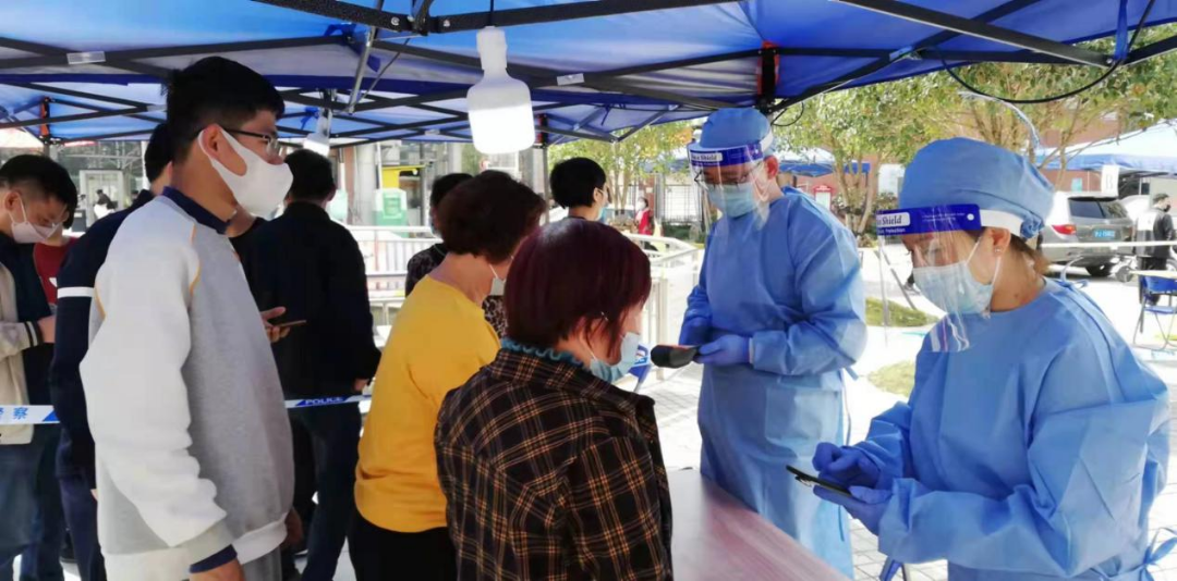 区民政局党员干部按照分配的检测时间,配合社区工作人员分时段、有序组织居民排队到达核酸检测点,保持好“一米线”距离,耐心引导参与检测的居民打开核酸检测二维码,帮助未携带手机或者不能使用智能手机的老年人用身份证做好核酸登记,并及时解答居民疑问,通过维持现场秩序、统计检测人数、整理检测现场,帮助社区完成全员核酸检测工作。