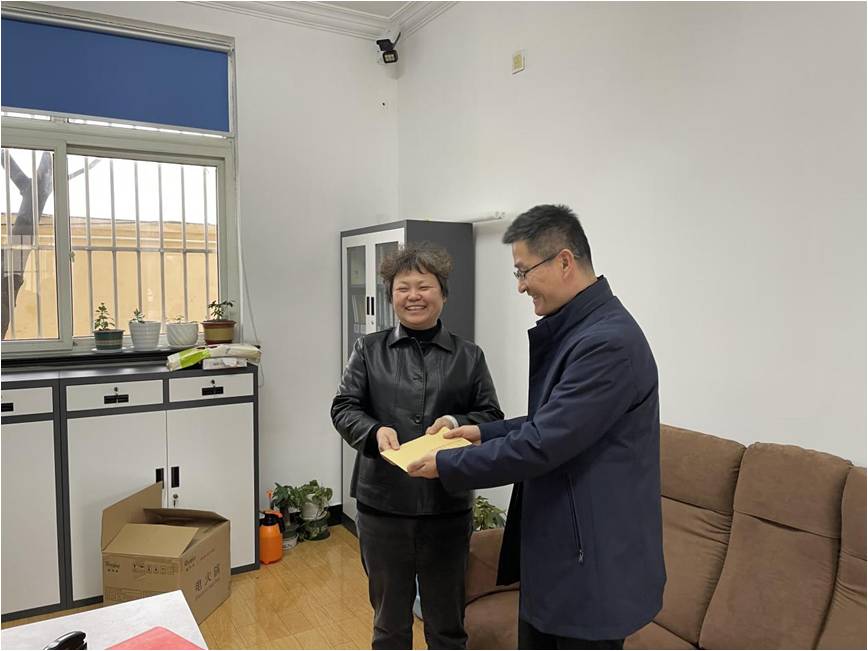 首先在赵屯村村委,沈德荣书记向赵屯村送上由城建所党支部全体党员为赵屯村困难户募捐的慰问金,赵屯村吴英书记代表村委接受爱心捐款,并向城建所党支部多年来的善举表示感谢。
