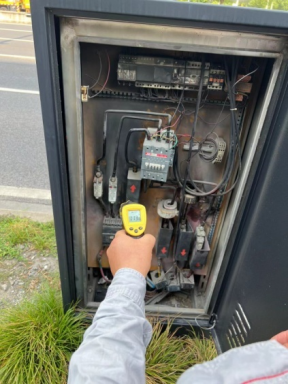 此次检查主要针对路灯用电压力较大的路段。检查中发现,白天未亮灯时,在阳光直射下路灯控制箱内部设备温度高达113℃,已经超过了控制箱正常的运行温度。到了晚上亮灯之后,设备温度依然达到了72℃。根据检查情况,区城建所与养护单位讨论了针对高温情况下控制箱温度较高的应对措施,并要求养护单位高度重视,加强巡检,避免引起安全事故、路灯系统瘫痪等问题,确保城市照明稳定运行。