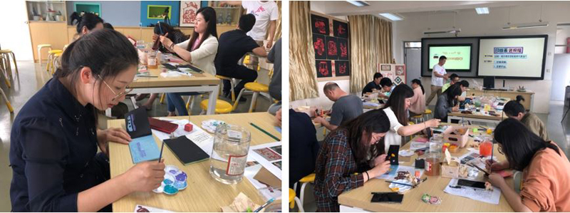 在单元教学观摩前,主持人张老师先介绍了本次送教活动的背景、目的和意义。并结合本次送教的主题单元,给团队成员做了简短的培训。着重讲解了如何进行富有地域特色的美术主题单元设计,比如商榻特色文化融入本单元教学中,以及如何设计单元教学活动,令团队老师深受启发。