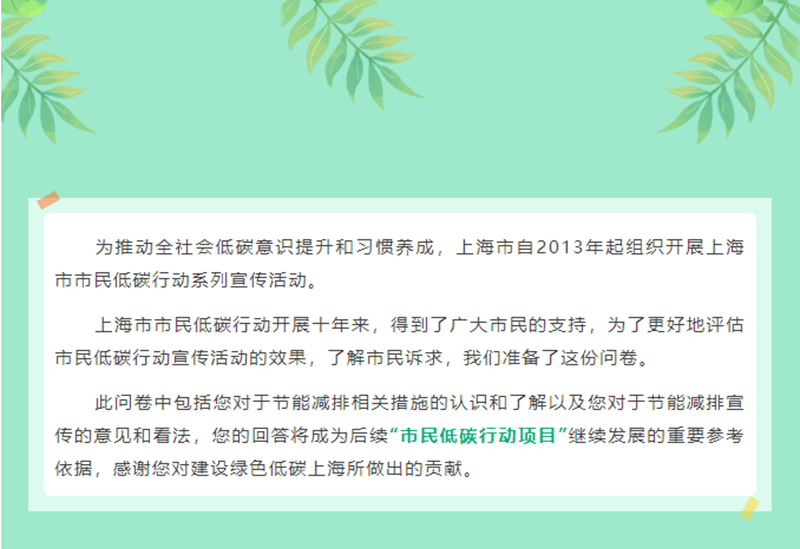 @所有人,市民低碳行动项目满意度问卷调查邀您参与