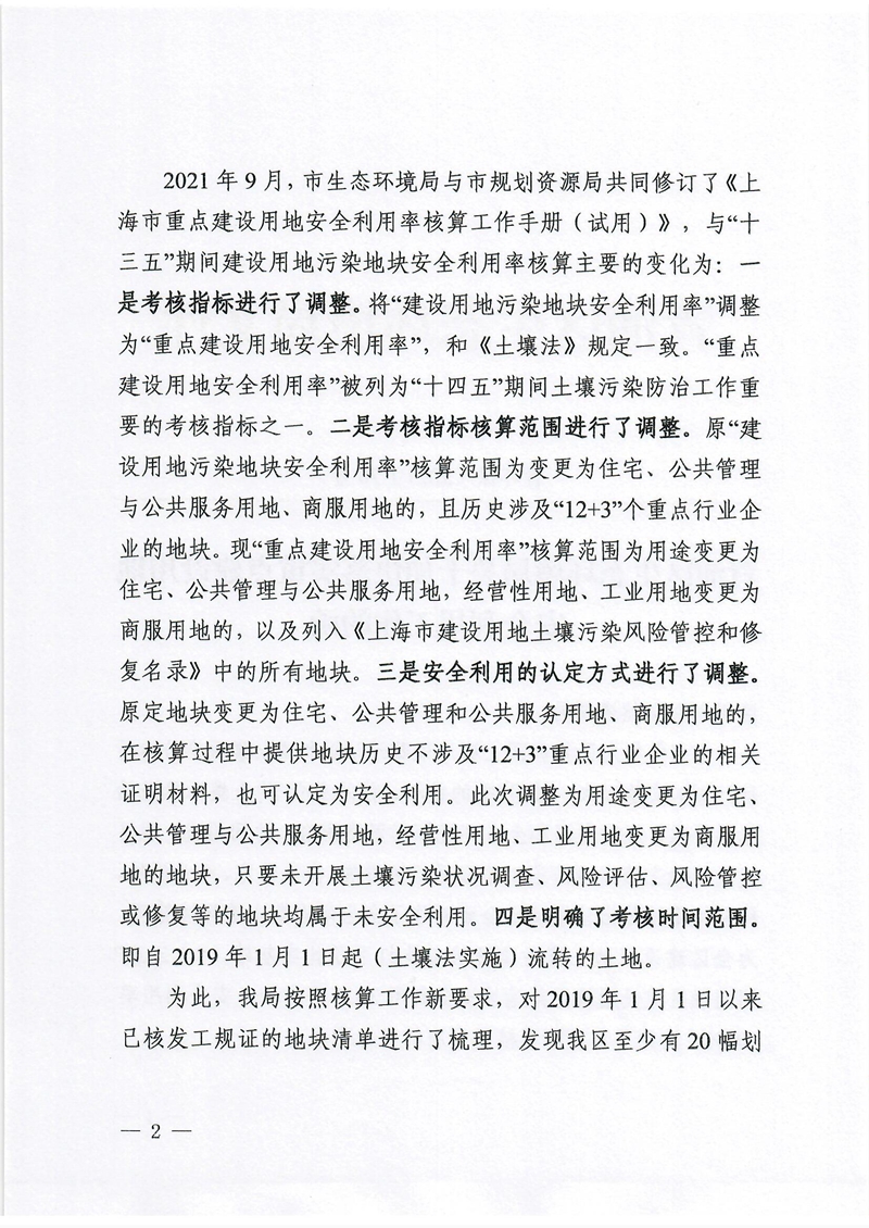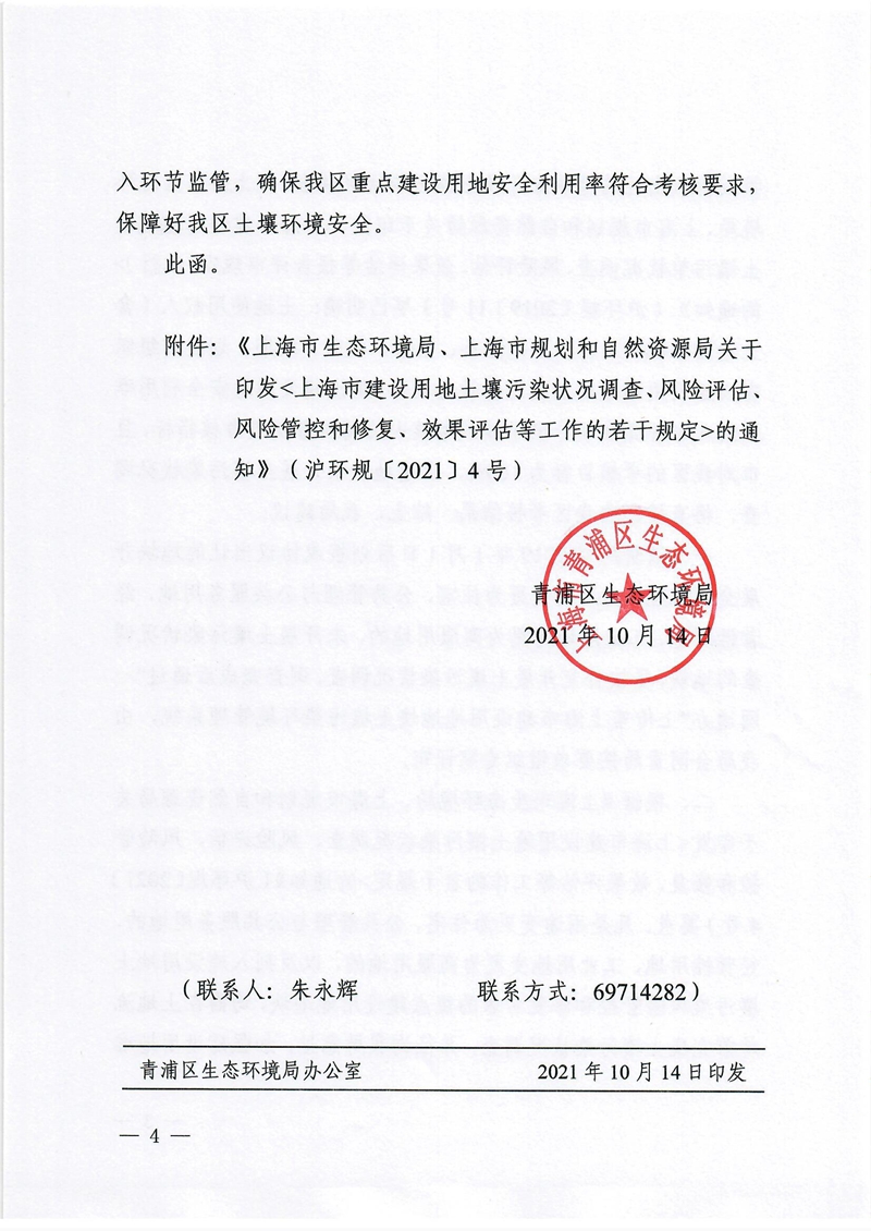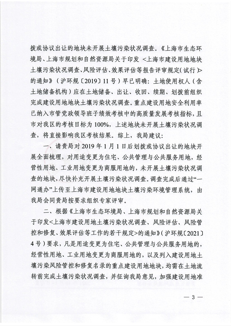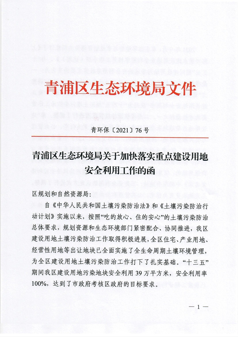 青浦区生态环境局关于加快落实重点建设用地安全利用工作的函