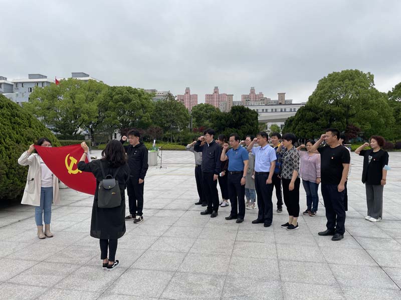 在上海解放纪念馆的英雄纪念碑前,全体党员重温了入党誓词,在机关党支部书记杨辰灏的领誓下,全体党员庄严地举起右手,面向党旗宣誓,“我志愿加入中国共产党……随时准备为党和人民牺牲一切,永不叛党。”铮铮誓言催人奋进,再一次坚定了践行党的初心使命的决心。