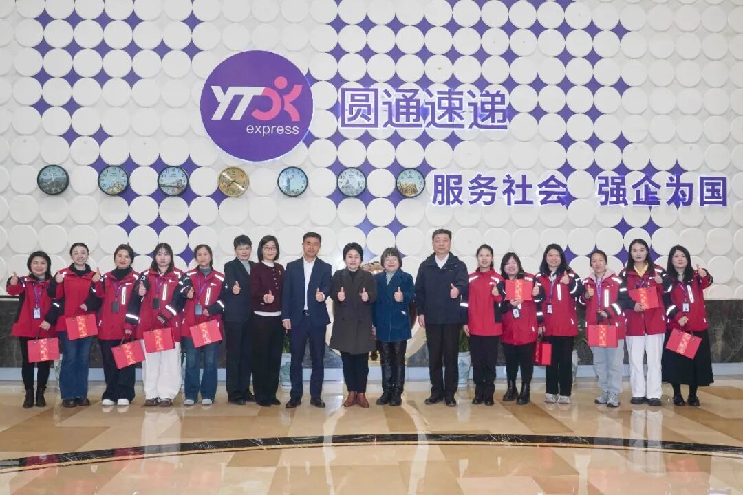 在圆通速递上海总部,金佩副主席一行走进指挥调度中心,实地察看现代信息技术在快递物流领域的运用情况,了解企业在智慧物流方面的探索实践,听取关于女性从业人员关爱保障情况的介绍,并为女性代表送上节日祝福和暖“新”包。