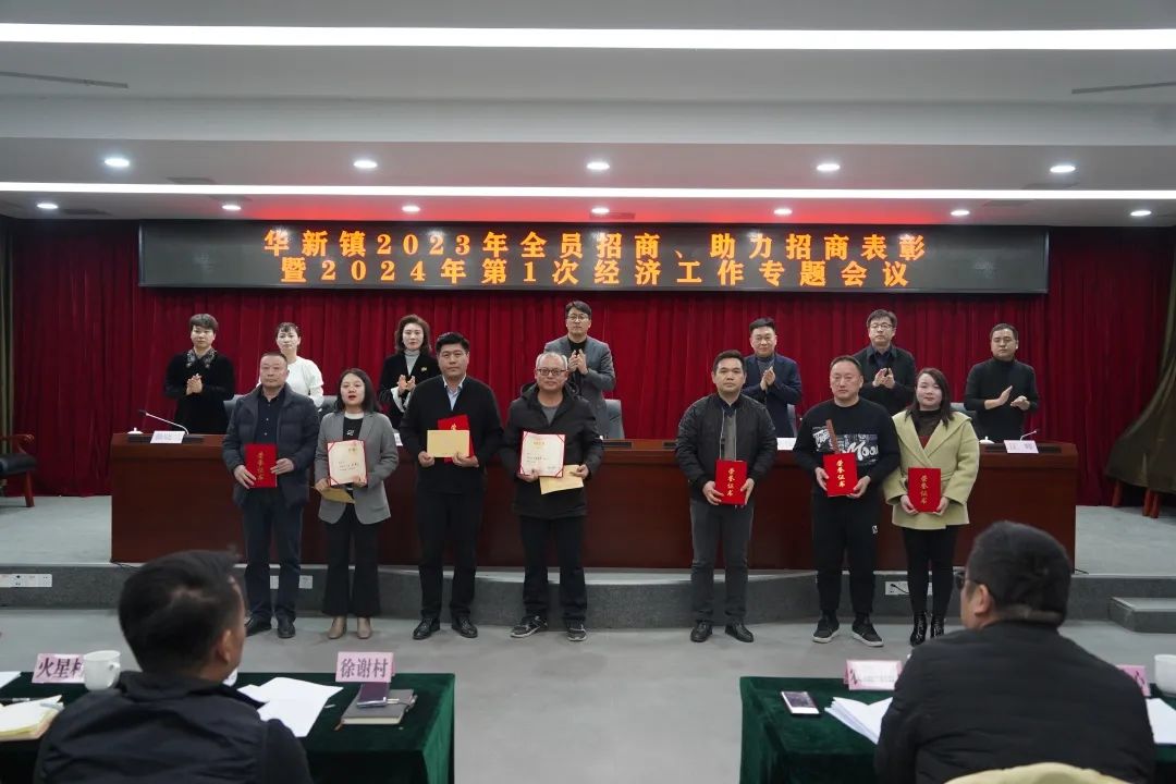 2024年1月24日下午,华新镇召开2023年全员招商、助力招商表彰暨2024年第1次经济工作专题会议,会上回顾总结了2023年招商引资工作,表彰了招商工作中涌现出来的优秀部门和个人,并部署了2024年主要经济指标任务。