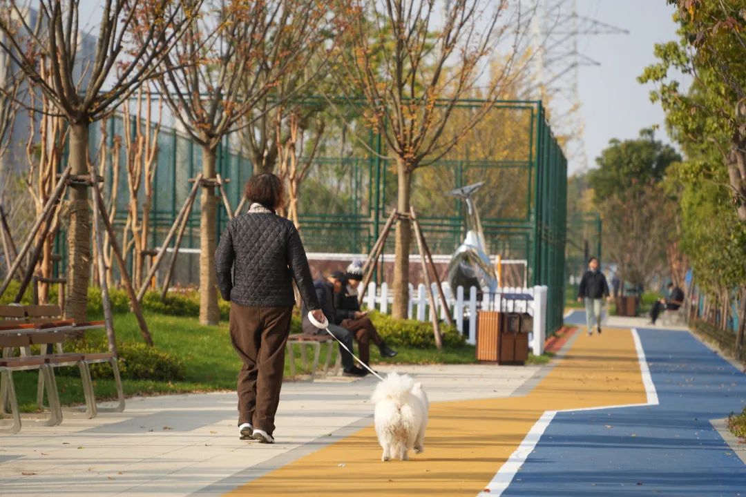整个项目于2024年8月开工,11月完工。通过打开滨水空间,让沿线市民能更加便捷地享受到滨水生活的乐趣。在景观提升方面,种植了层次丰富、颜色分明的各类景观乔木、灌木、小品毛球等,还增设了草坪灯,在保障夜间安全的同时,给周边区域增添夜景氛围。