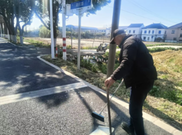 有村民要帮忙,他说:“这活我来,碎玻璃容易扎手,你们别靠太近。”直到路面清理得干干净净,他才直起腰,抹了把额头的汗。那一刻,夕阳正好,橙色的马甲上落满了余晖。