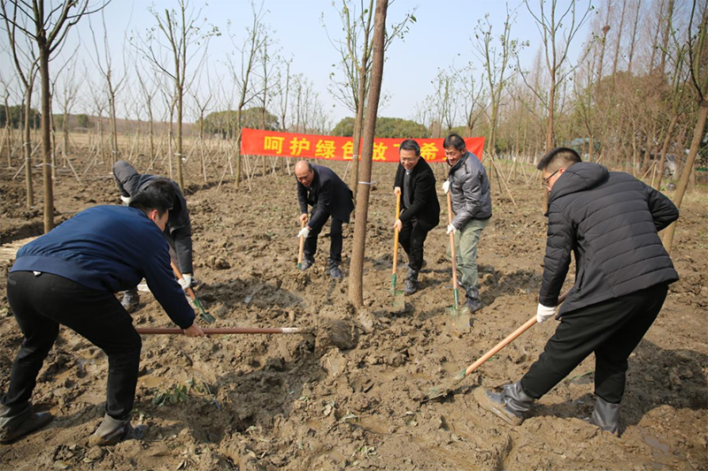 一行人来到新城绿环开展植树活动。活动现场,参加植树的党员干部严格按照栽植技术规范和要求,两人一组或三五搭档,扶正树苗、挥锹铲土、填土踩实。大家相互协作、积极主动、干劲十足,呈现出一派热火朝天的劳动景象。