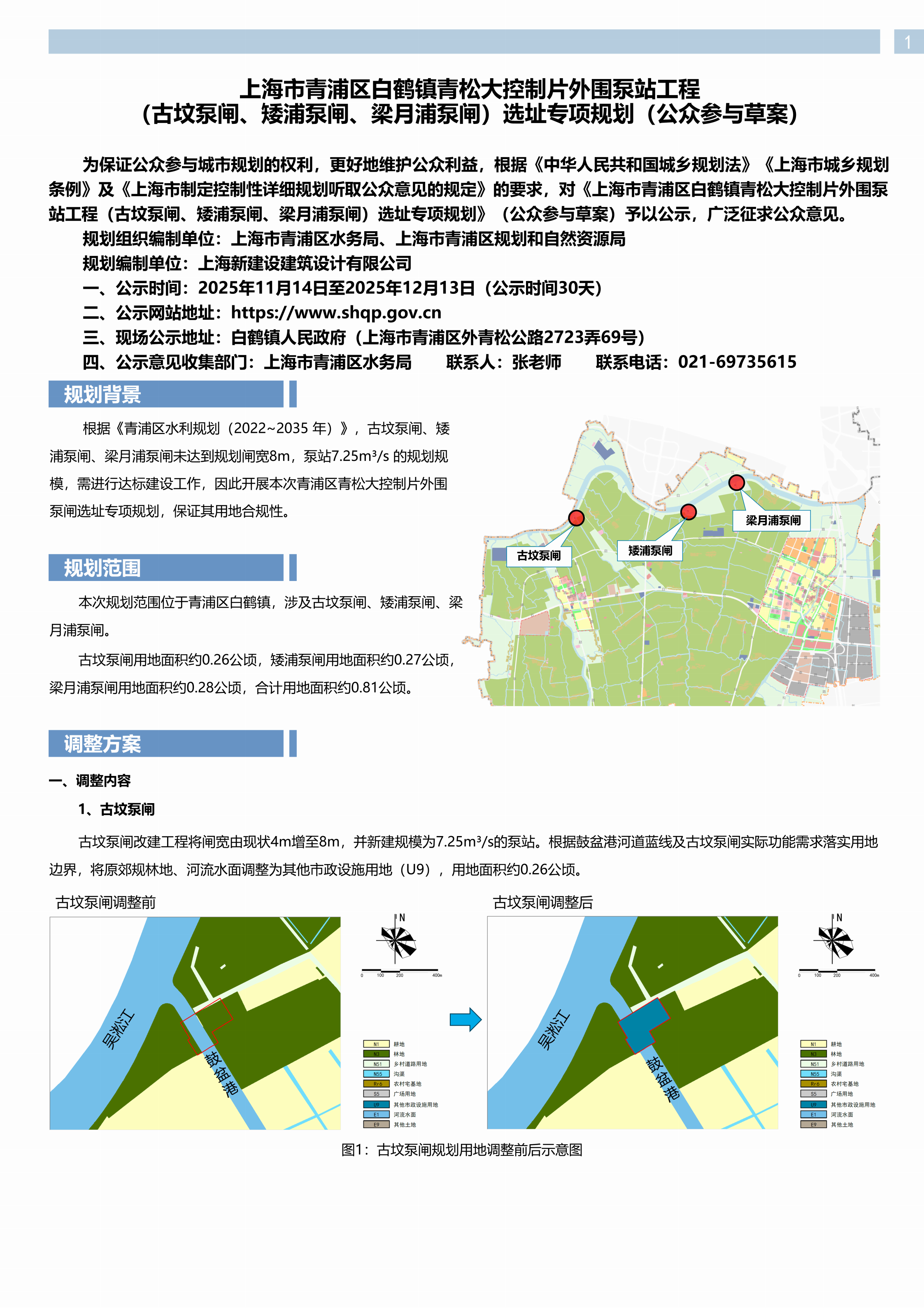 上海市青浦区白鹤镇青松大控制片外围泵站工程(古坟泵闸、矮浦泵闸、梁月浦泵闸)选址专项规划(公众参与草案)