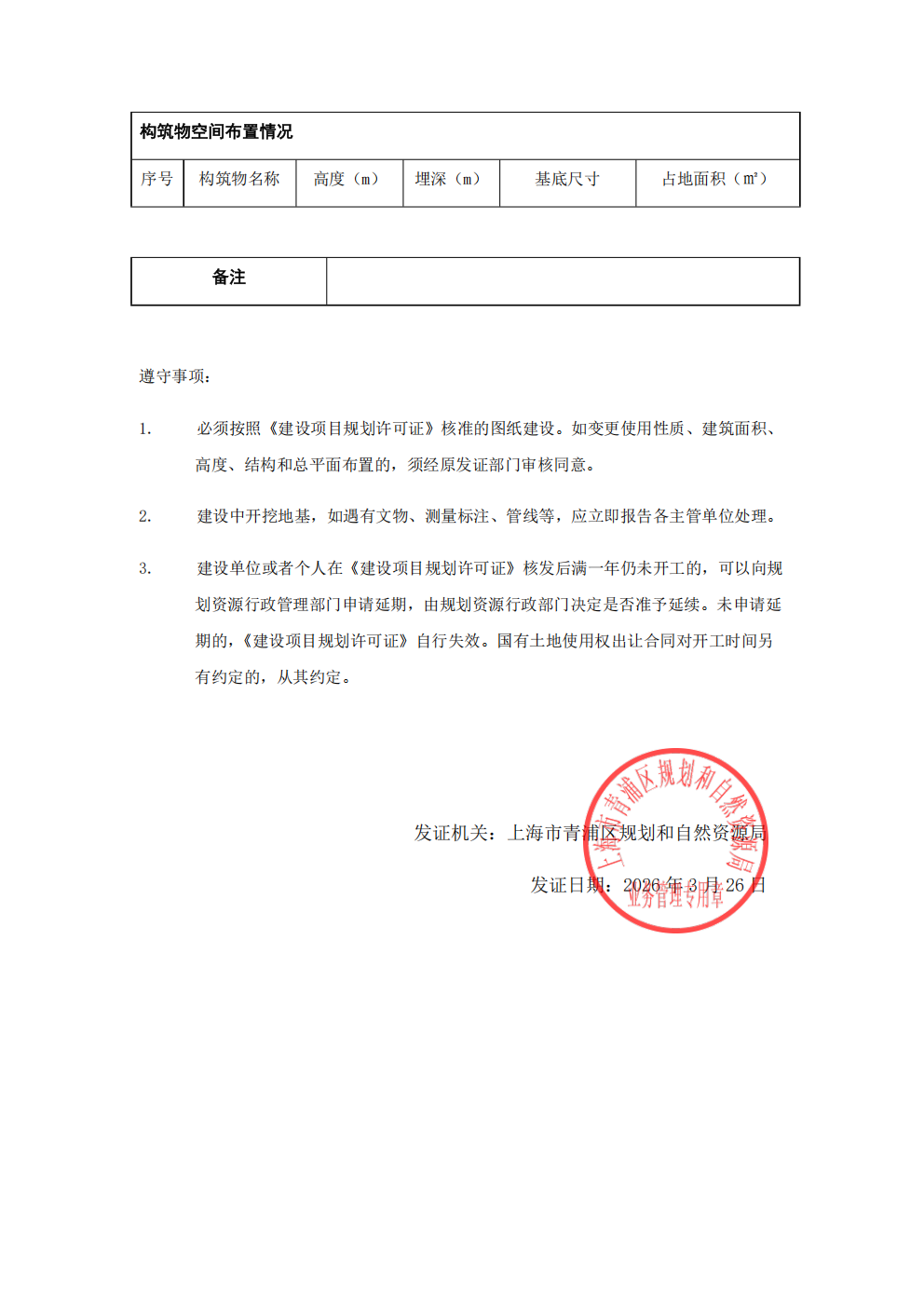 根据《中华人民共和国城乡规划法》、《上海市城乡规划条例》等有关规定,现对沪青建(2026)FB310118202600067号建设工程规划许可证及其总平面图进行公开。
