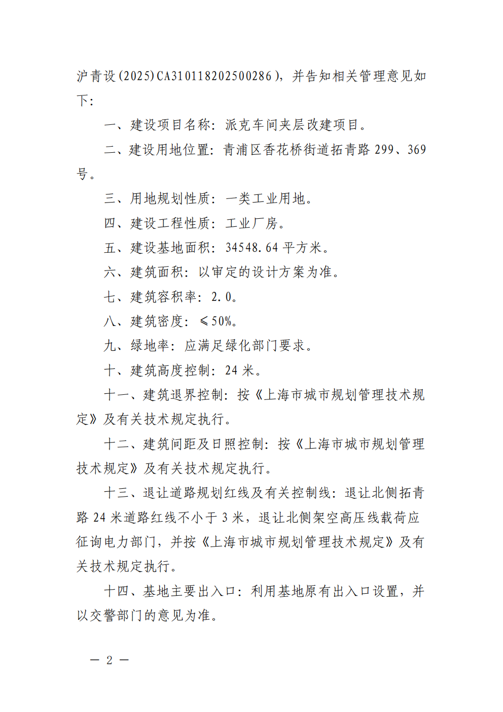 沪青设(2025)CA310118202500286建设工程设计要求