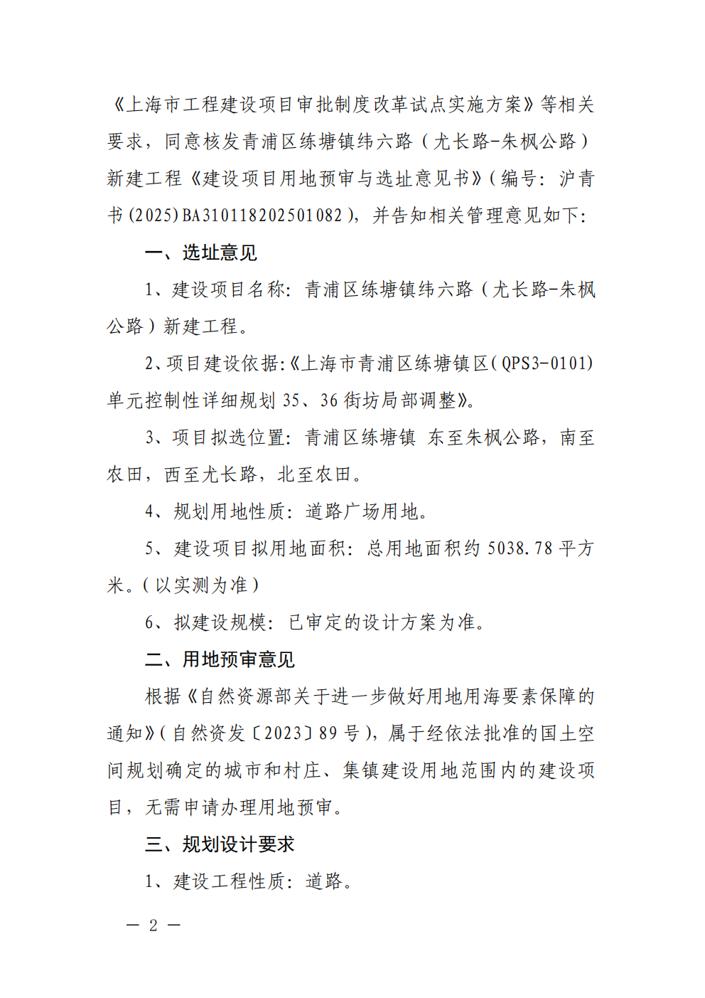 沪青书(2025)BA310118202501082建设项目用地预审与选址意见书(上海市青浦区练塘镇人民政府)