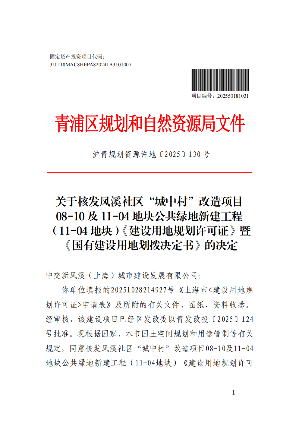 根据《中华人民共和国城乡规划法》、《上海市城乡规划条例》等有关规定,现对沪青地(2025)EA310118202500851建设用地规划许可证进行公开。