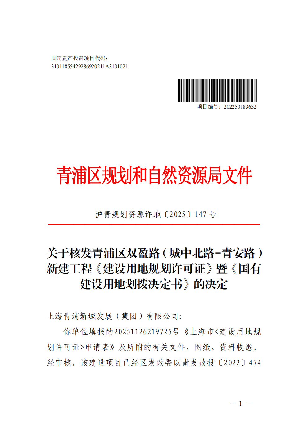 根据《中华人民共和国城乡规划法》、《上海市城乡规划条例》等有关规定,现对沪青地(2025)EA310118202500933建设用地规划许可证进行公开。