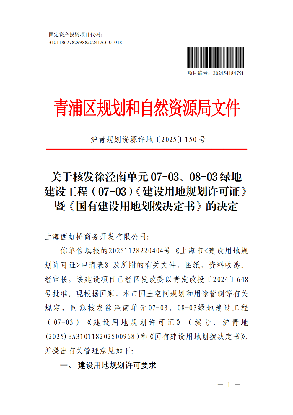 沪青地(2025)EA310118202500968建设用地规划许可公告(上海西虹桥商务开发有限公司)
